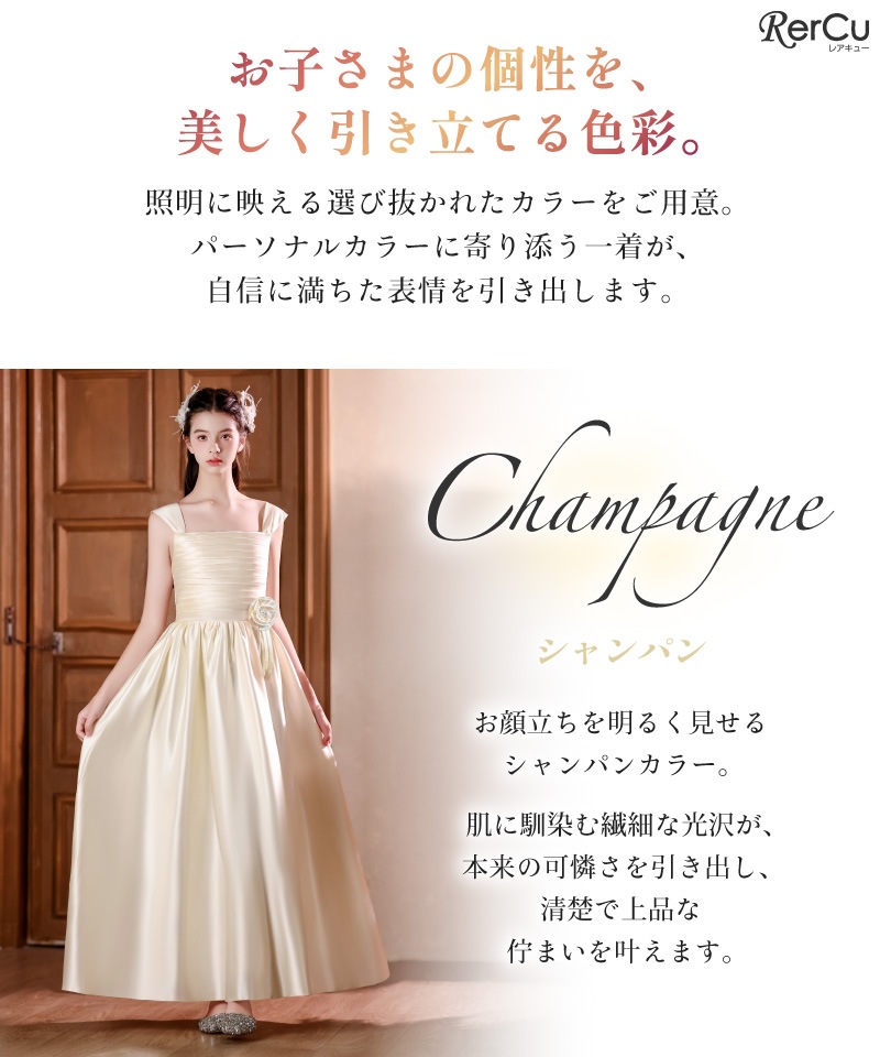 ピアノやバイオリンの発表会、結婚式、コンクール、記念撮影など。どの角度から見ても洗練された佇まいは、大舞台を終えて去る後ろ姿までドラマチックな余韻を残します。