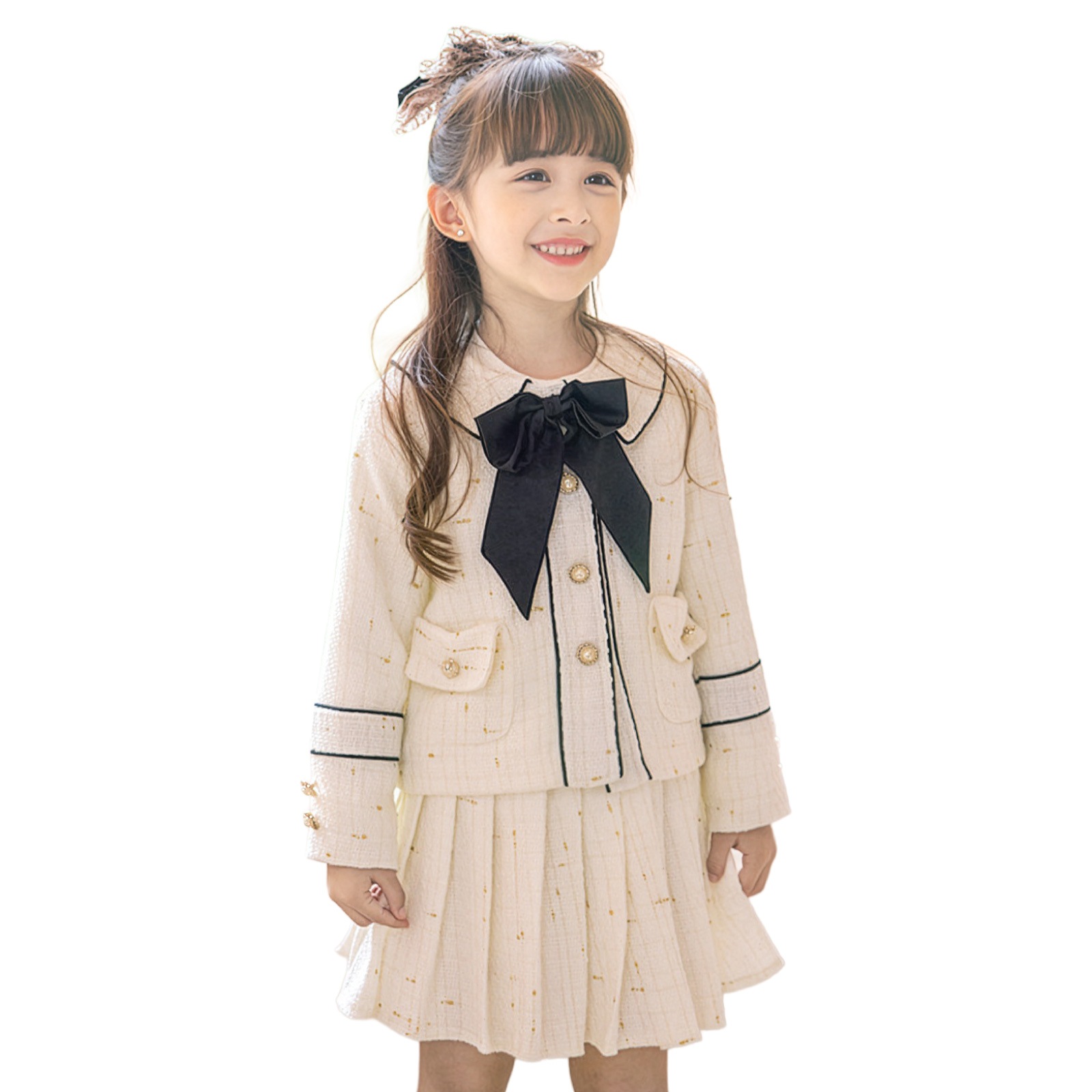 上品ツイード×大きなリボン 清楚で可愛い女の子フォーマルスーツ
