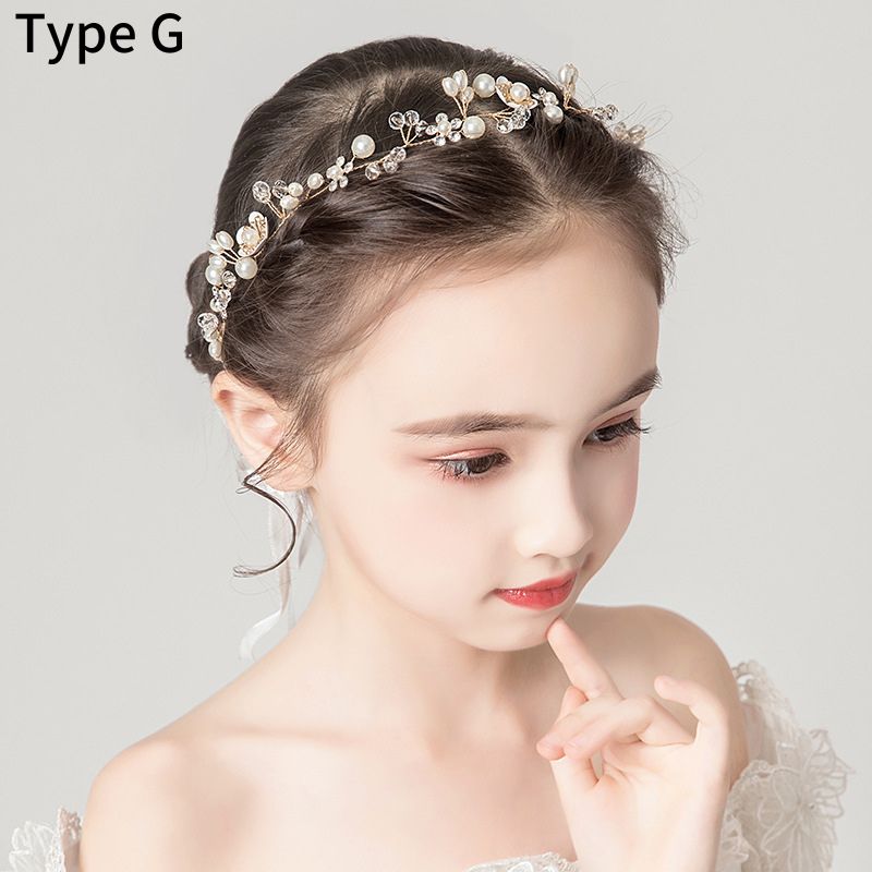 RerCu ワイヤーティアラ 女の子 クリスタル パール シルバー ゴールド 髪飾り 発表会 結婚式