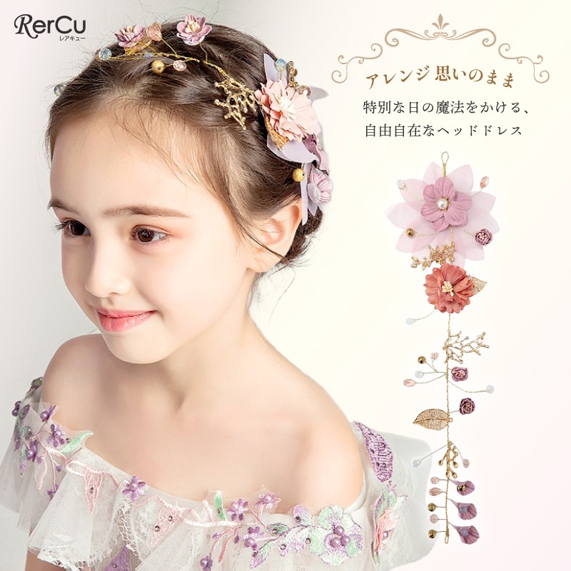 RerCu カチューシャ 女の子 プリンセス風 フラワー 発表会 パーティー