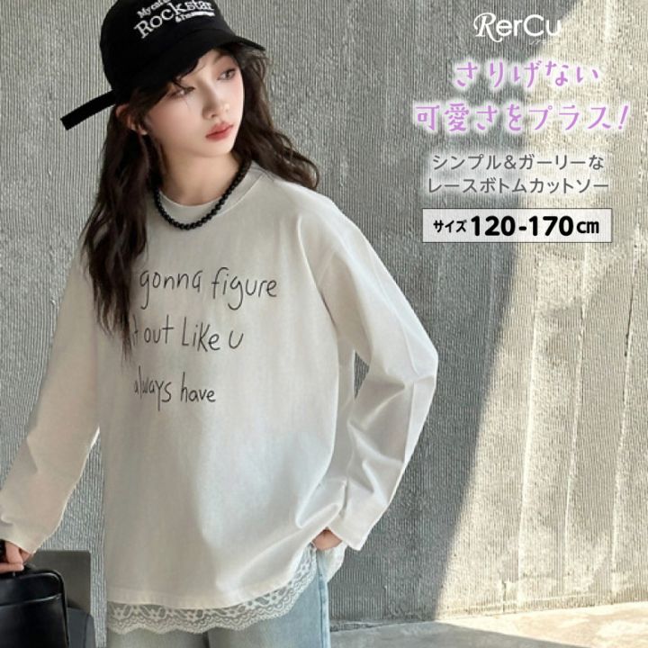 こども服 上着 長袖 レースボトムカットソー 長袖 トップス 子供服 キッズ 女の子 シャツ 綿 ストレッチ かわいい