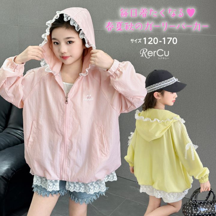 こども服 上着 長袖 パーカー アウター リボン刺繍入りスウェットトップス 春服 子供服 キッズ ジュニア 女の子
