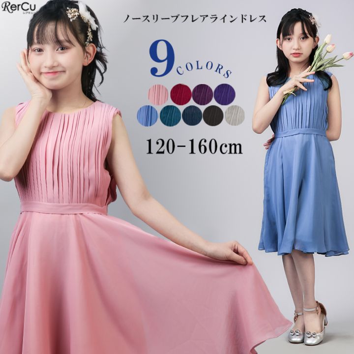 RerCu 子供ドレス プリーツトップ ノースリーブ Aライン フレア 発表会 結婚式 120-160cm 9色