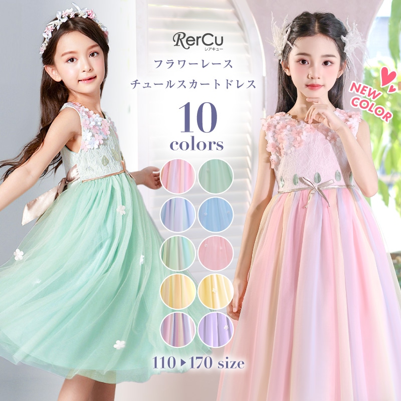 RerCu 子供 ドレス 発表会 チュール フラワー レース ロング ショート 100-160cm