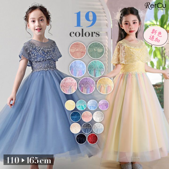 RerCu 新色追加 子供 ピアノ 発表会 ドレス ジュニア キッズ 女の子 ロング リボン付 エレガント レインボー
