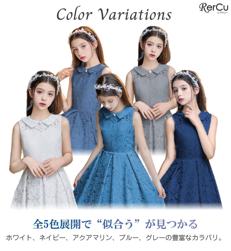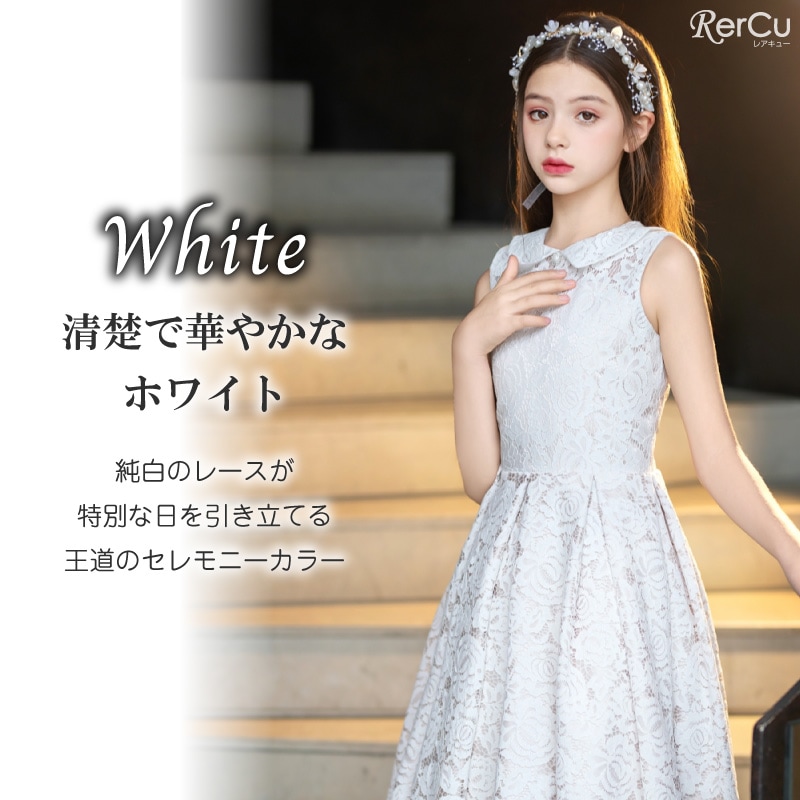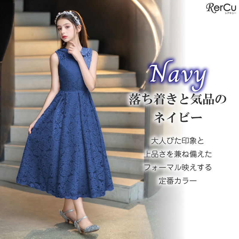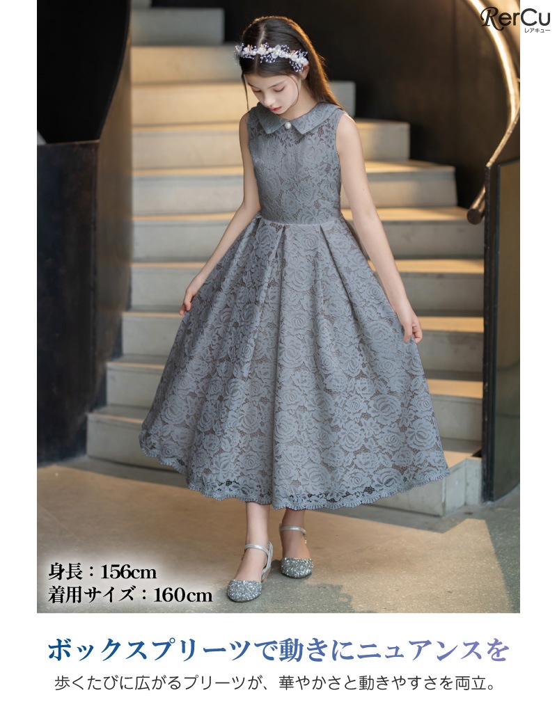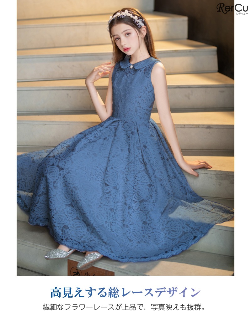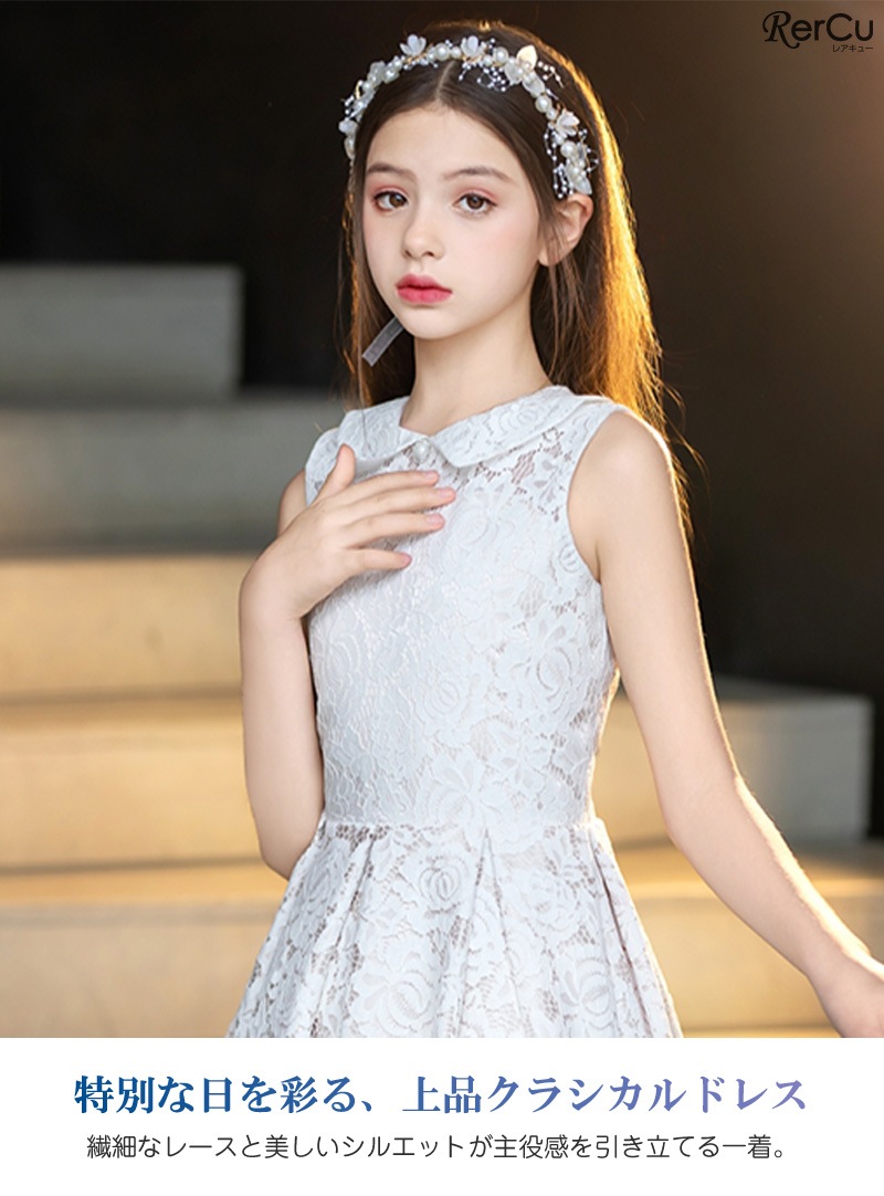 ピアノやバイオリンの発表会、フォーマルな結婚式やお呼ばれ、七五三や記念日の撮影用ドレスとしてもぴったり。落ち着きのあるデザインは小学生から中学生まで幅広く対応します。