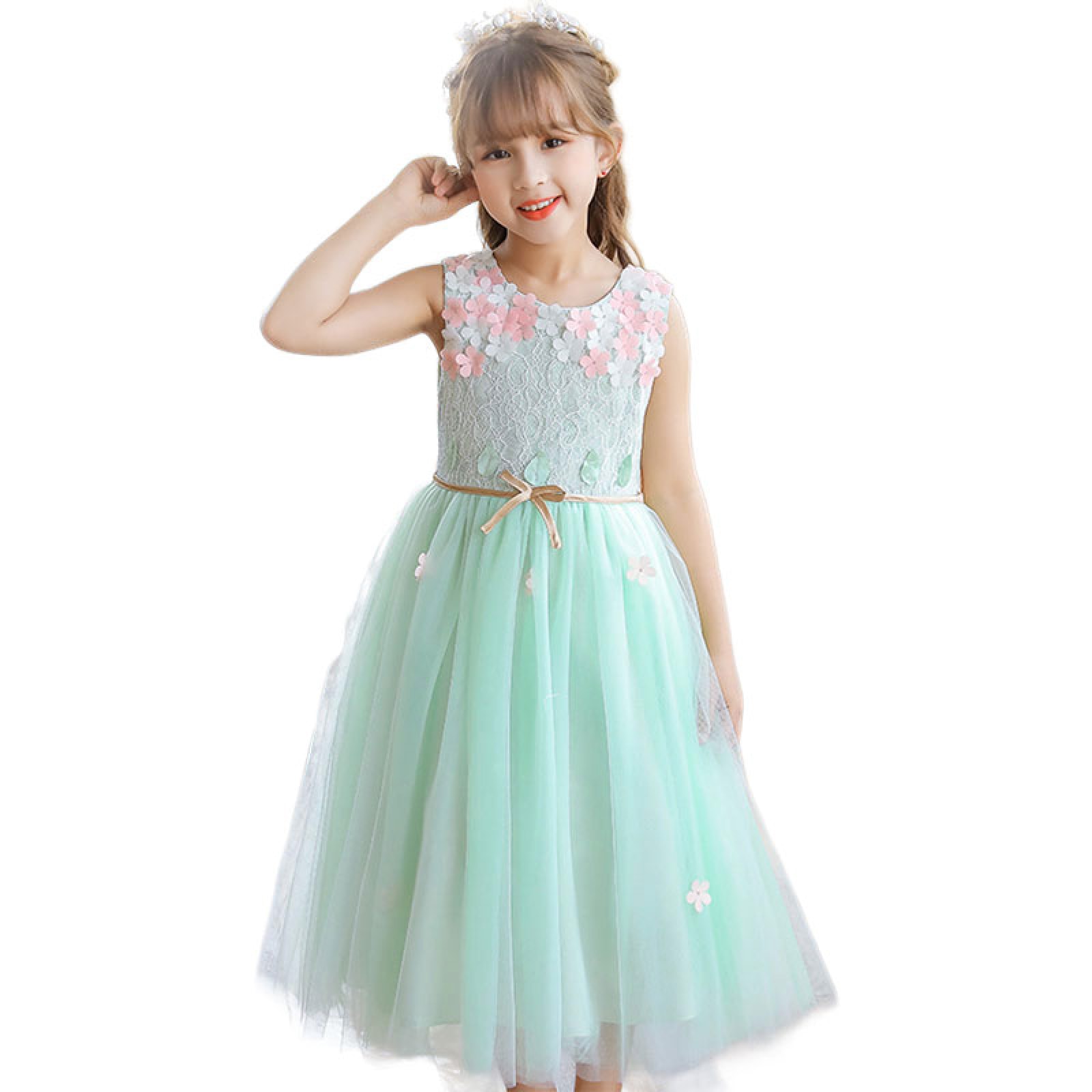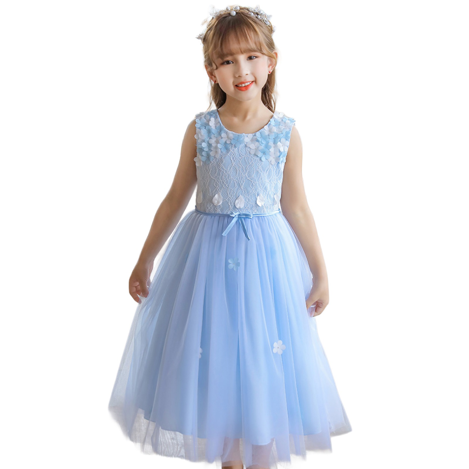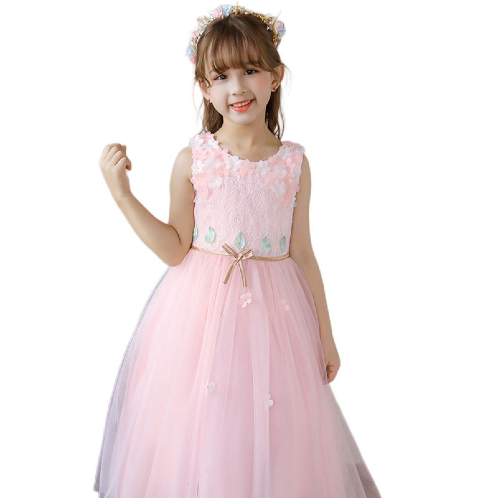 スカート部分は複数層のチュールでふんわりと広がり、動くたびに軽やかに揺れます。