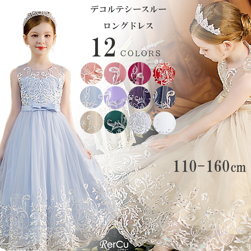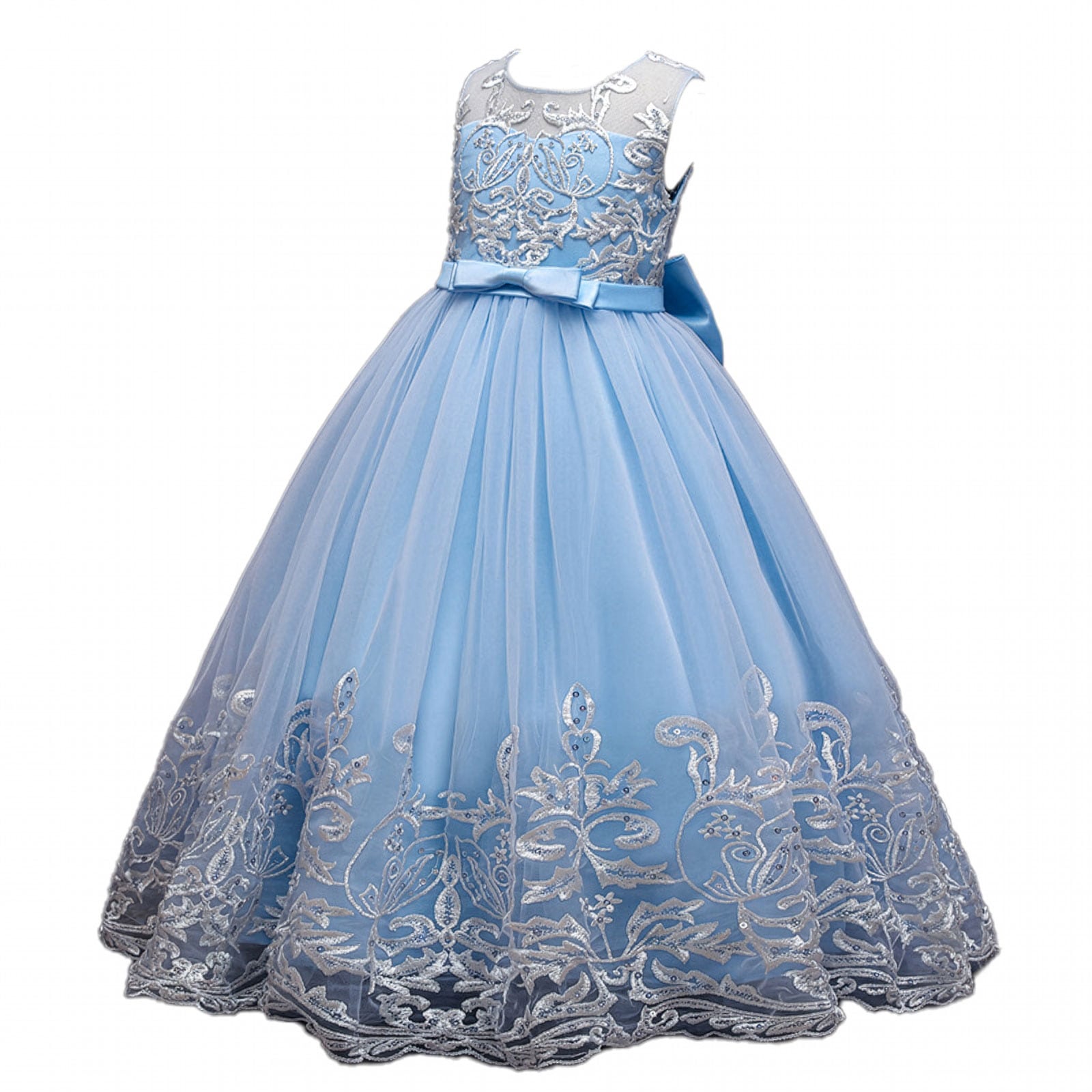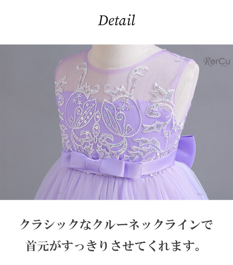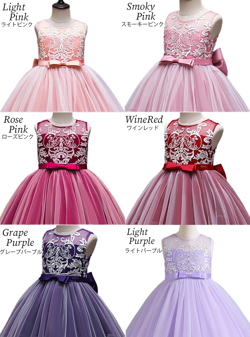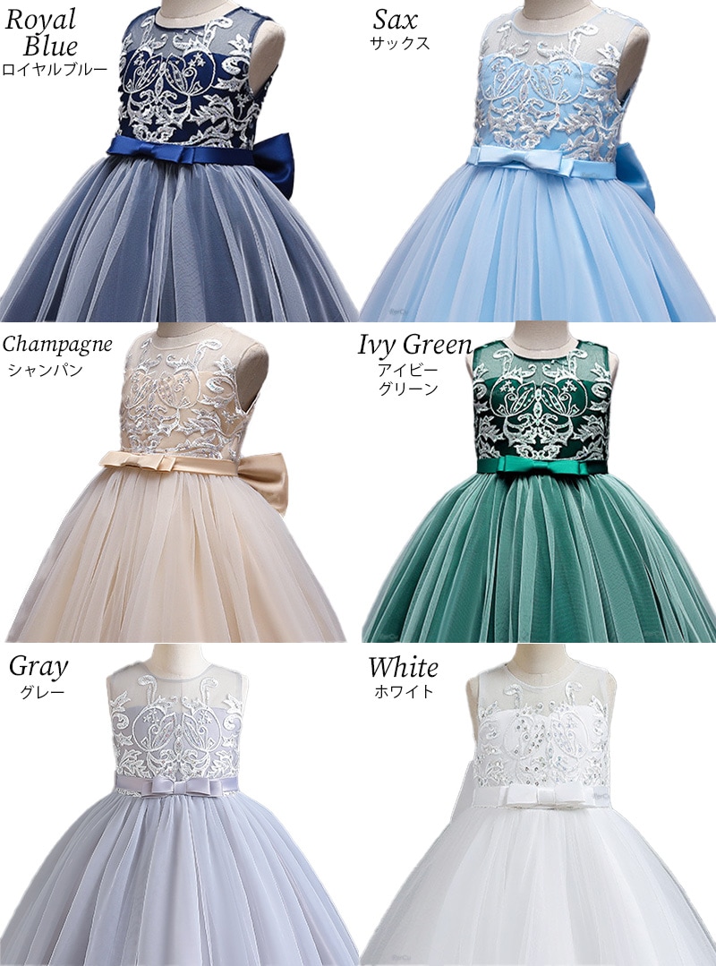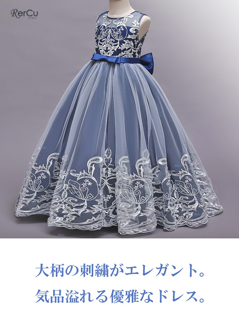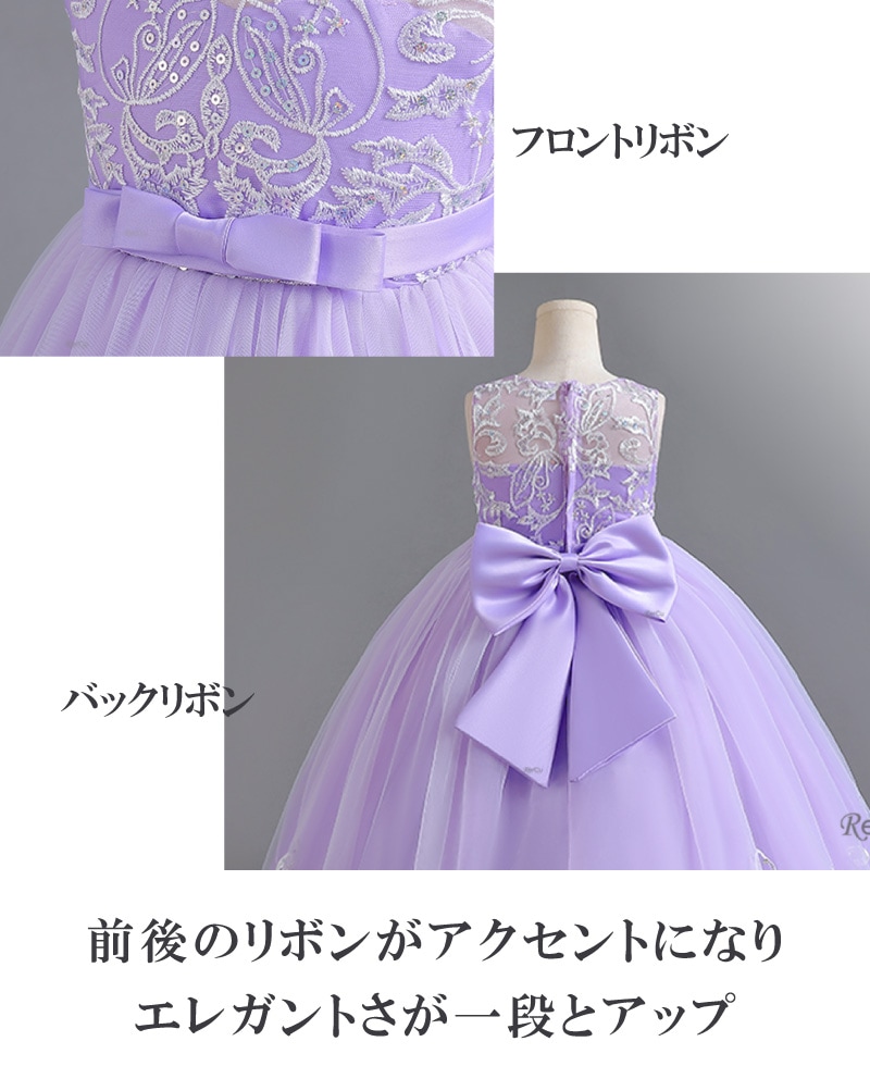 繊細な刺繍と上品リボンで華やかに映える、ロング丈発表会ドレス
