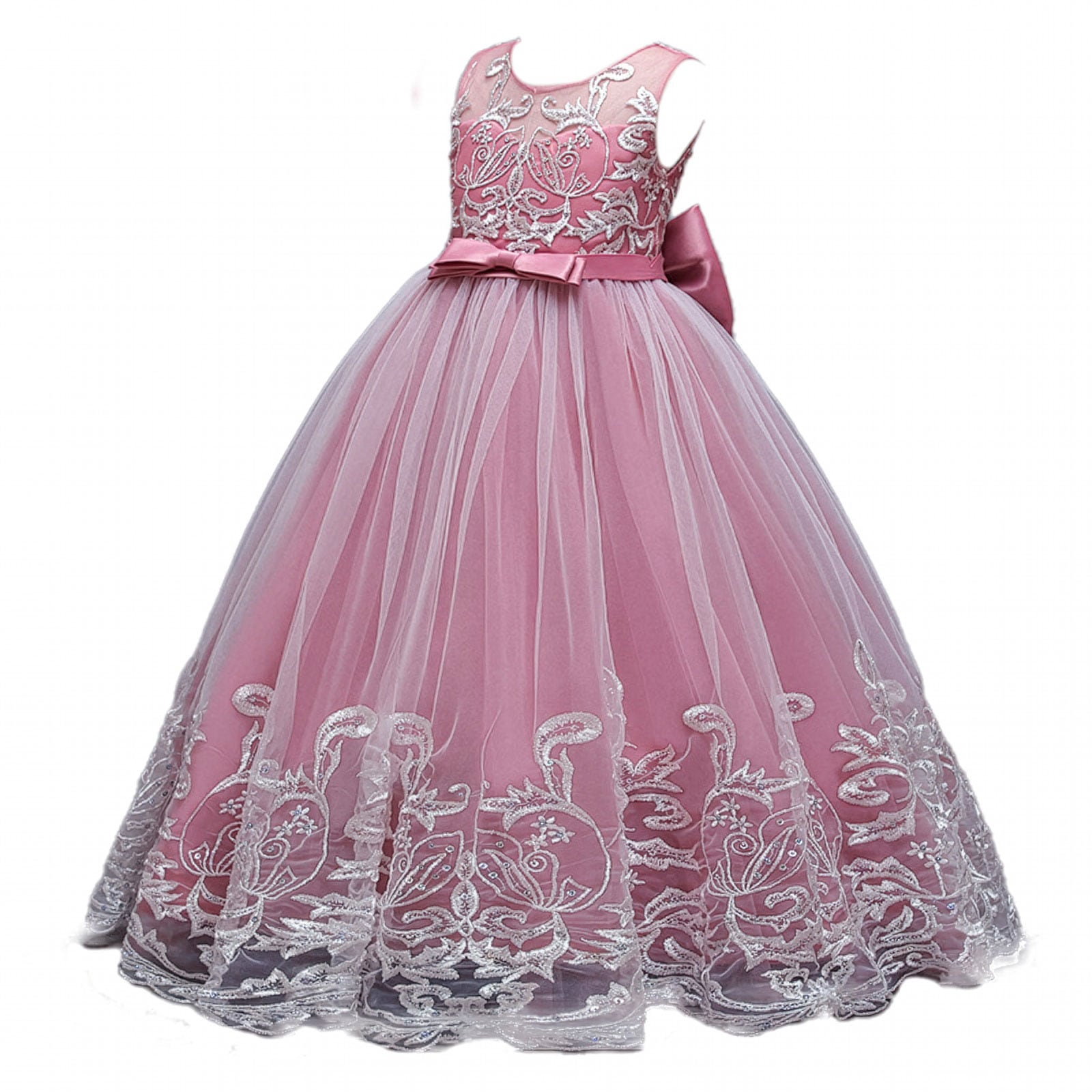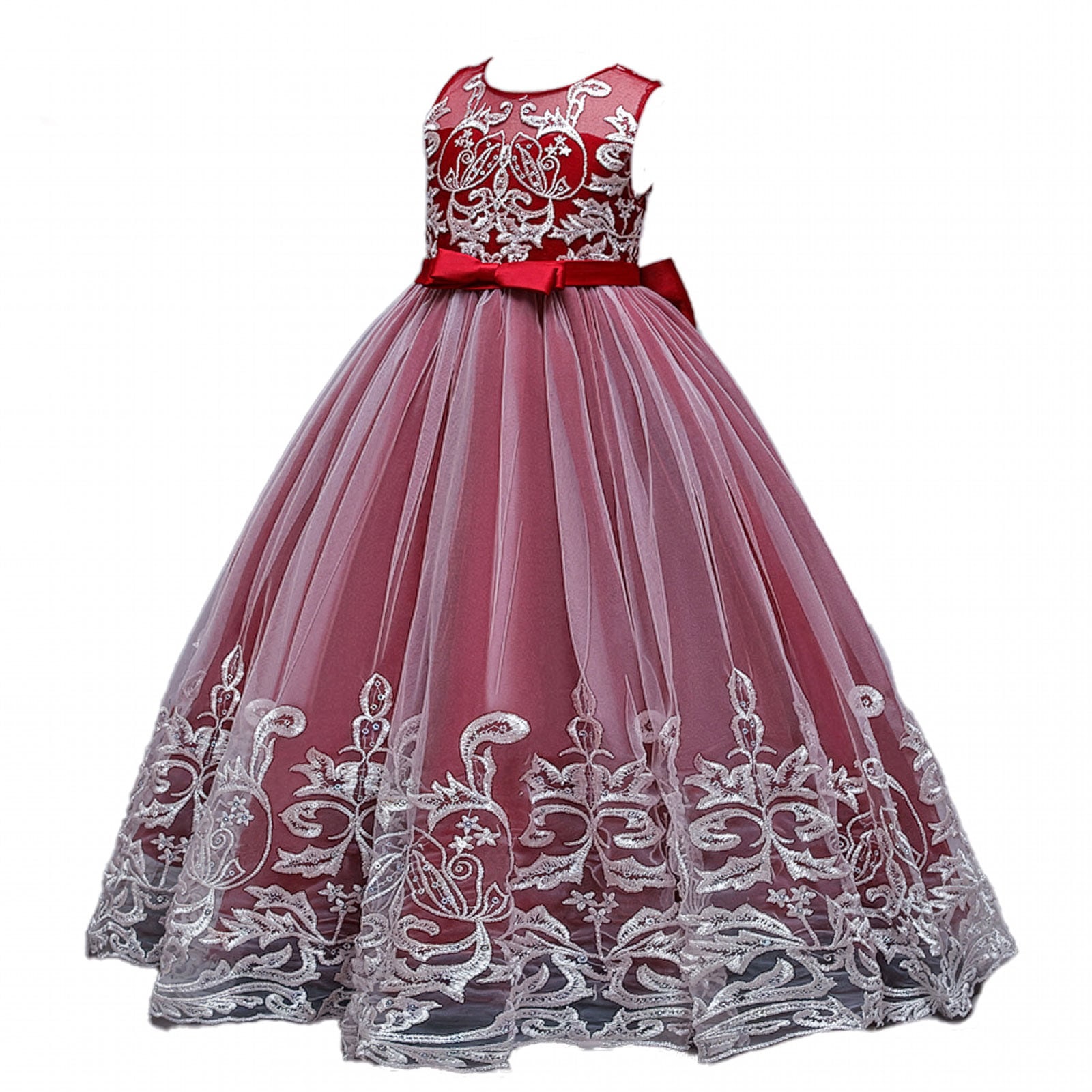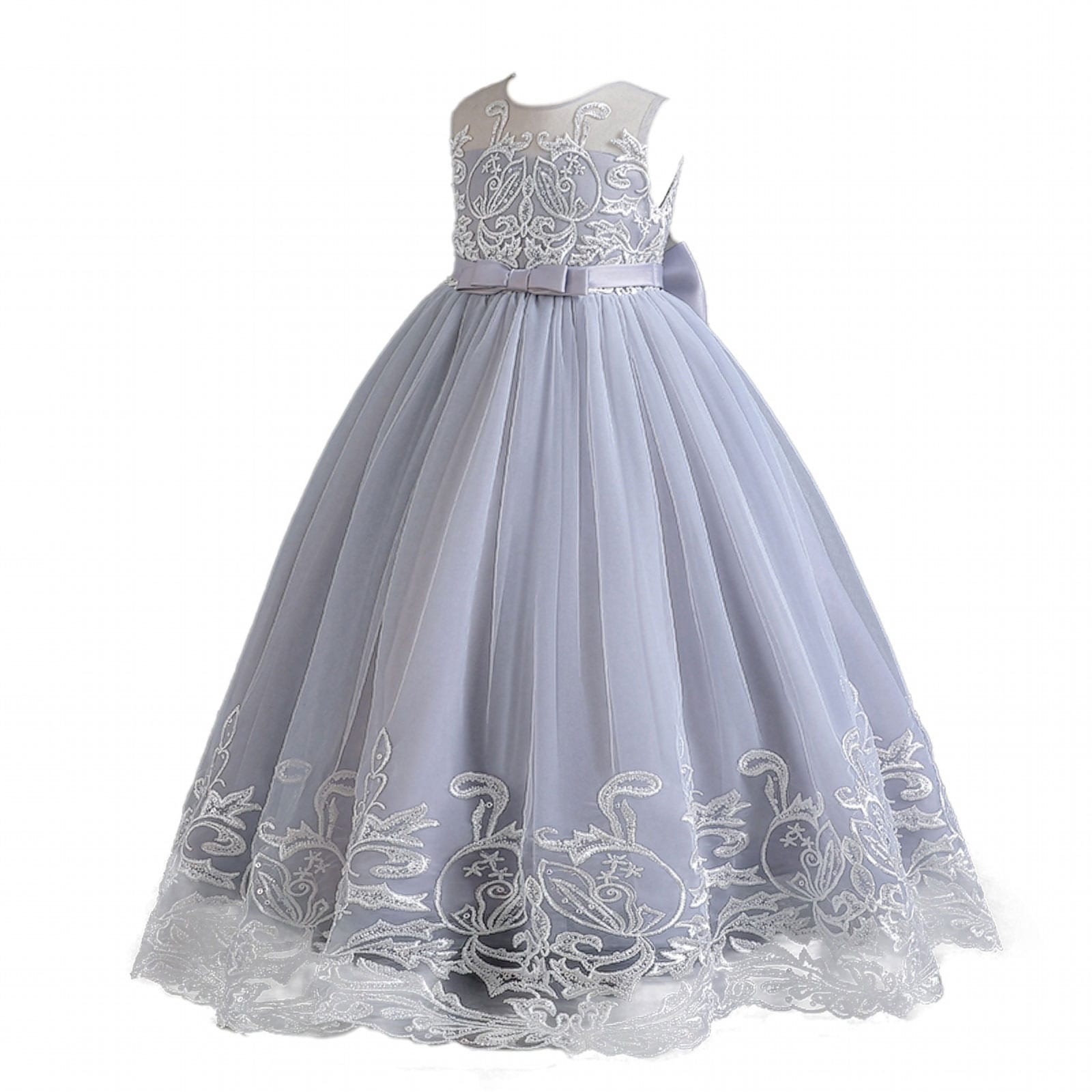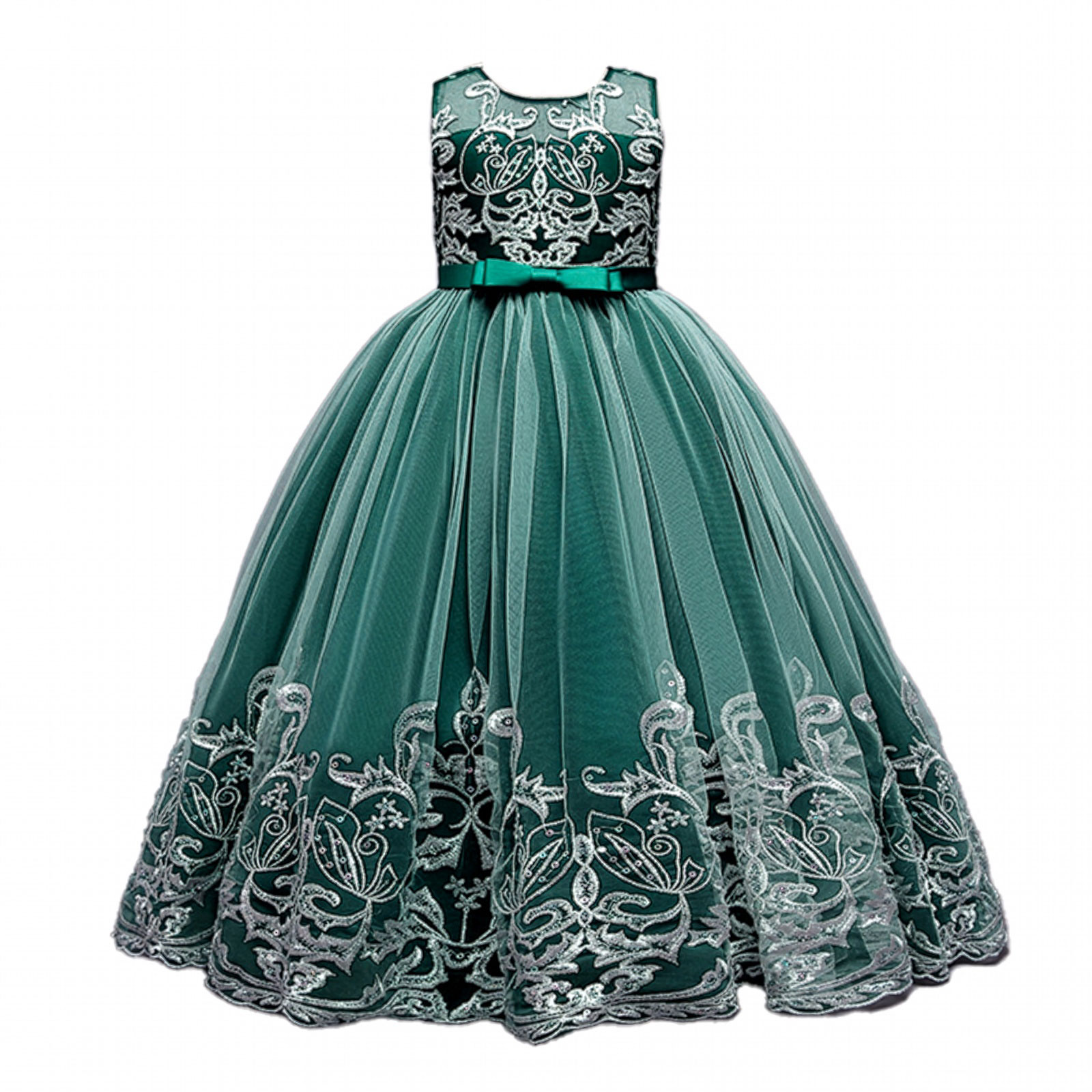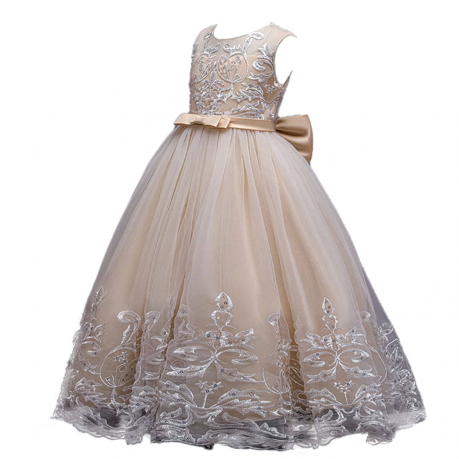 繊細な刺繍と上品リボンで華やかに映える、ロング丈発表会ドレス