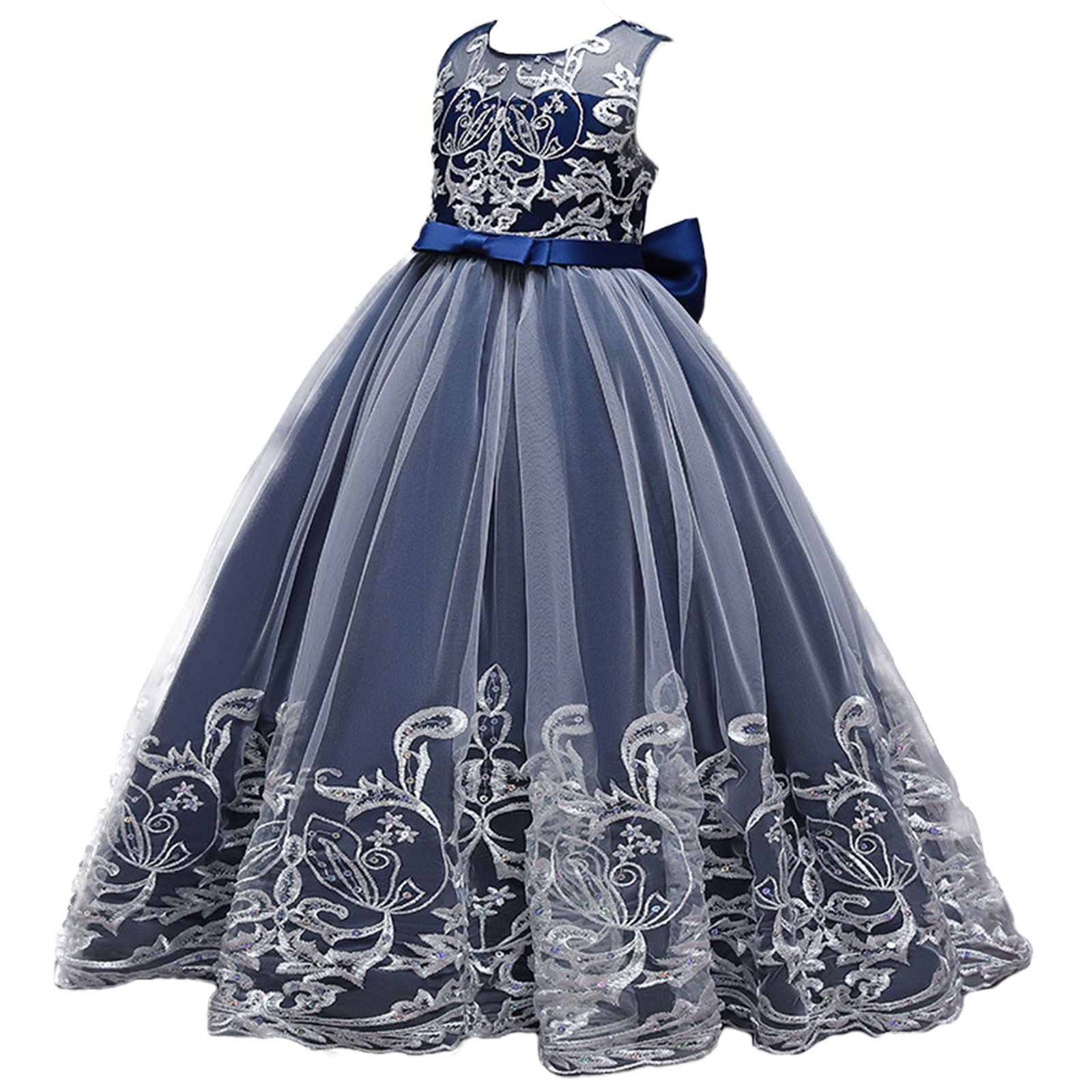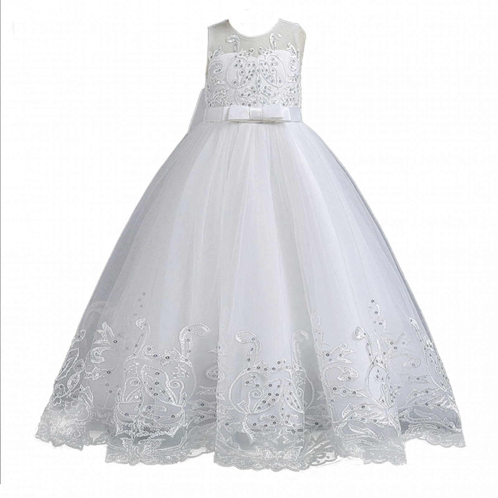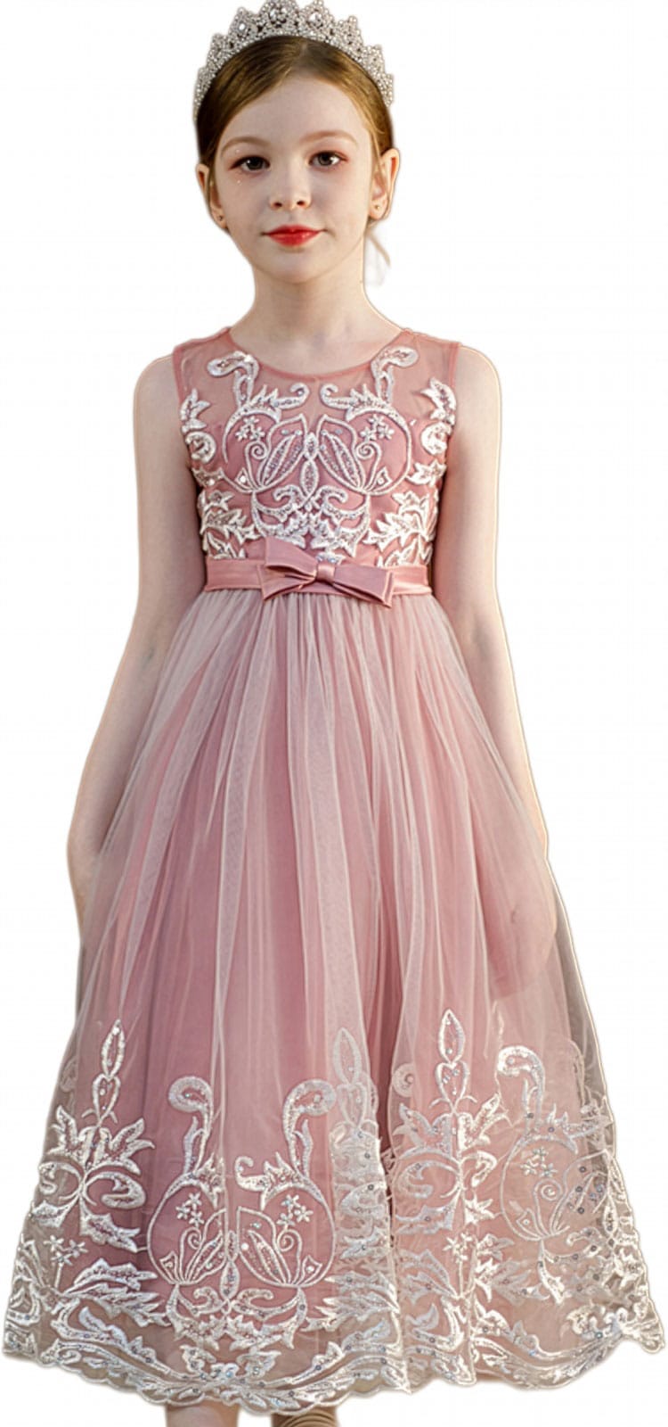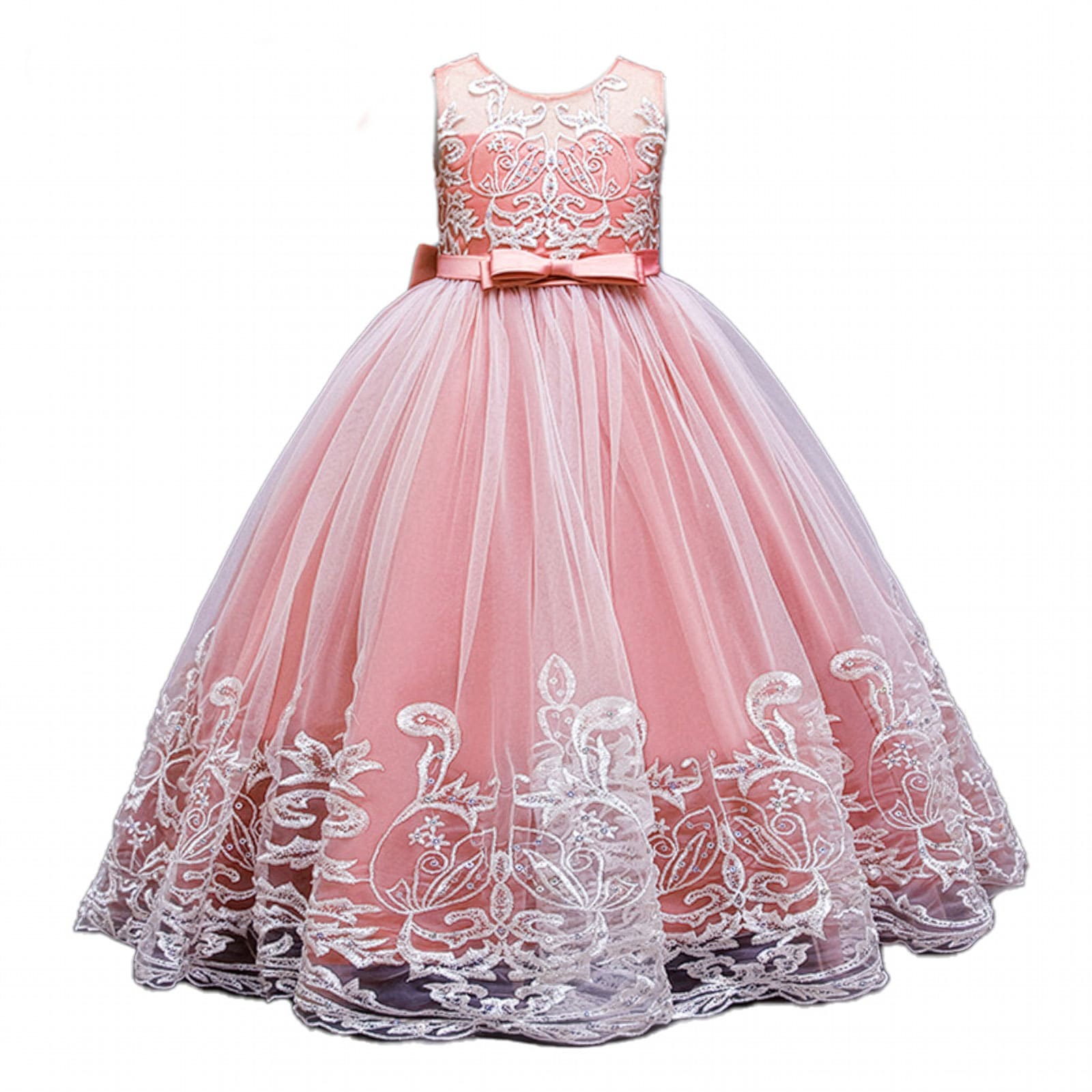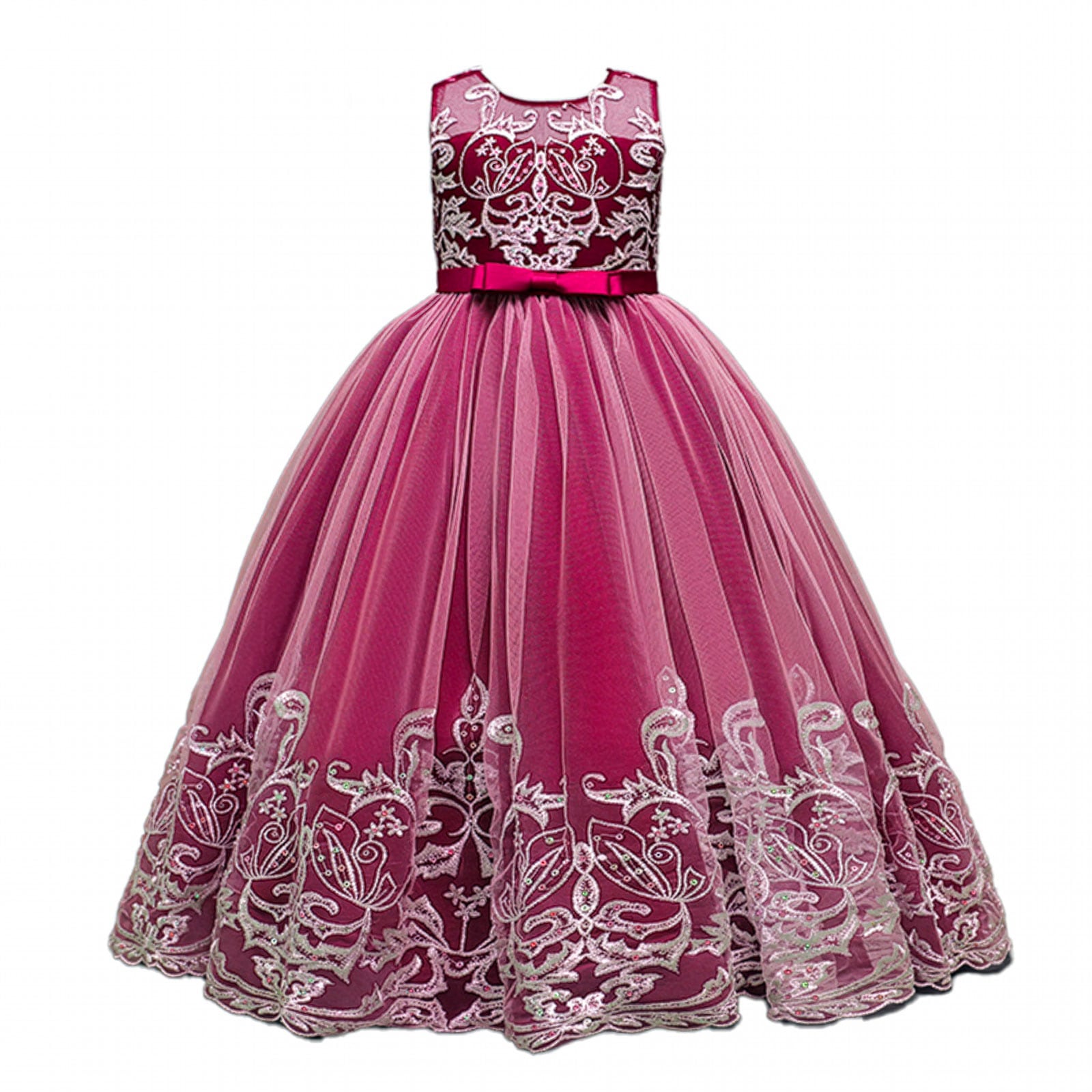 繊細な刺繍と上品リボンで華やかに映える、ロング丈発表会ドレス
