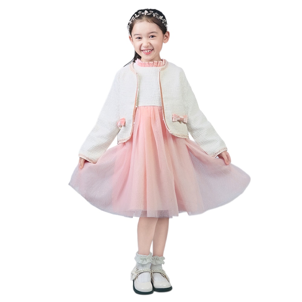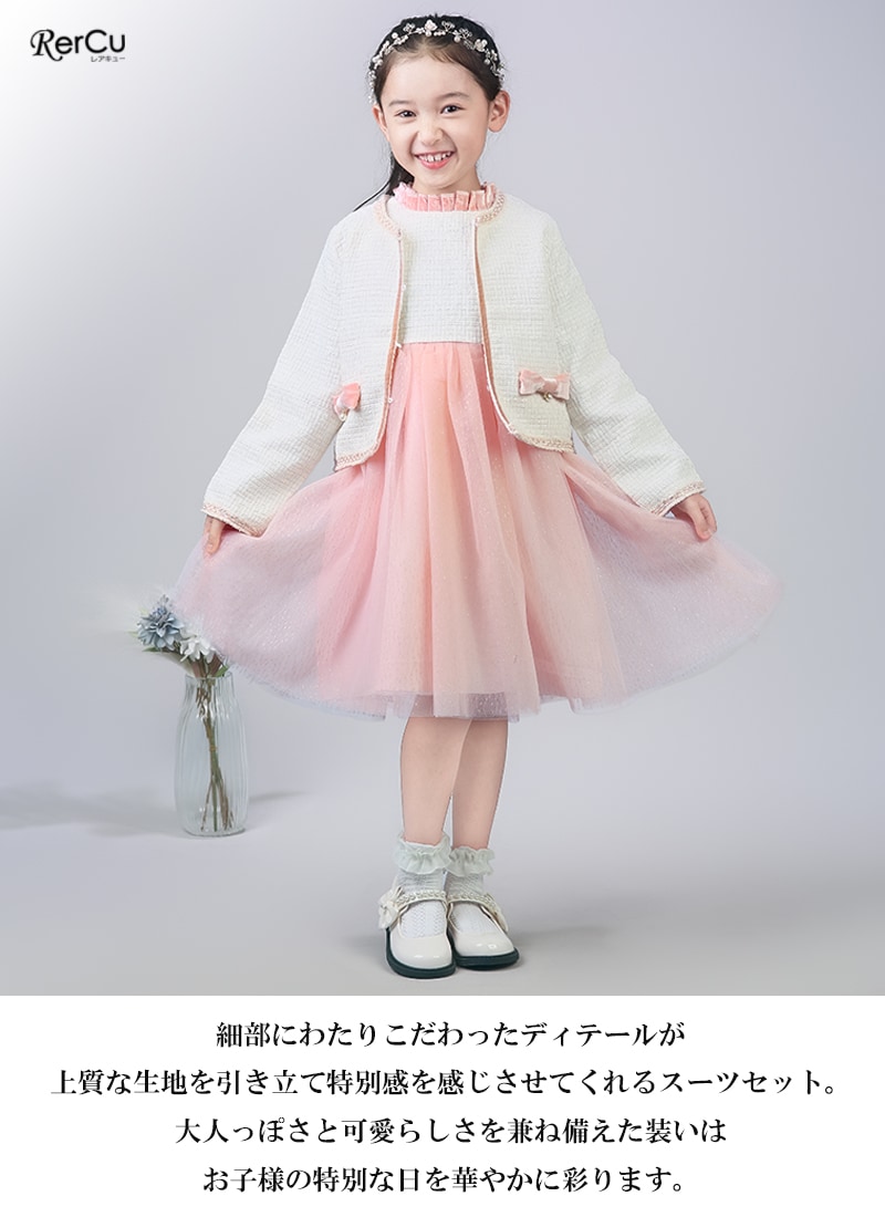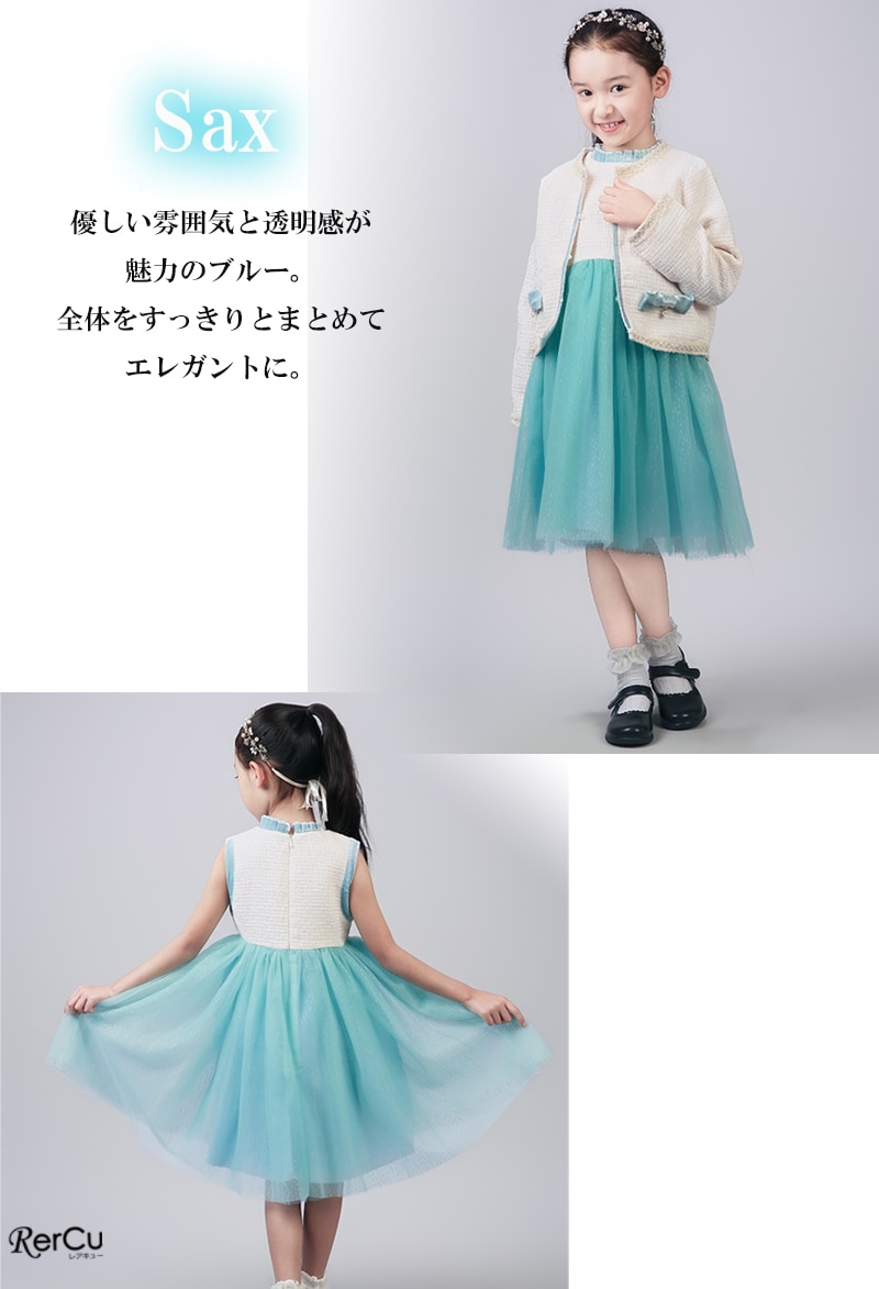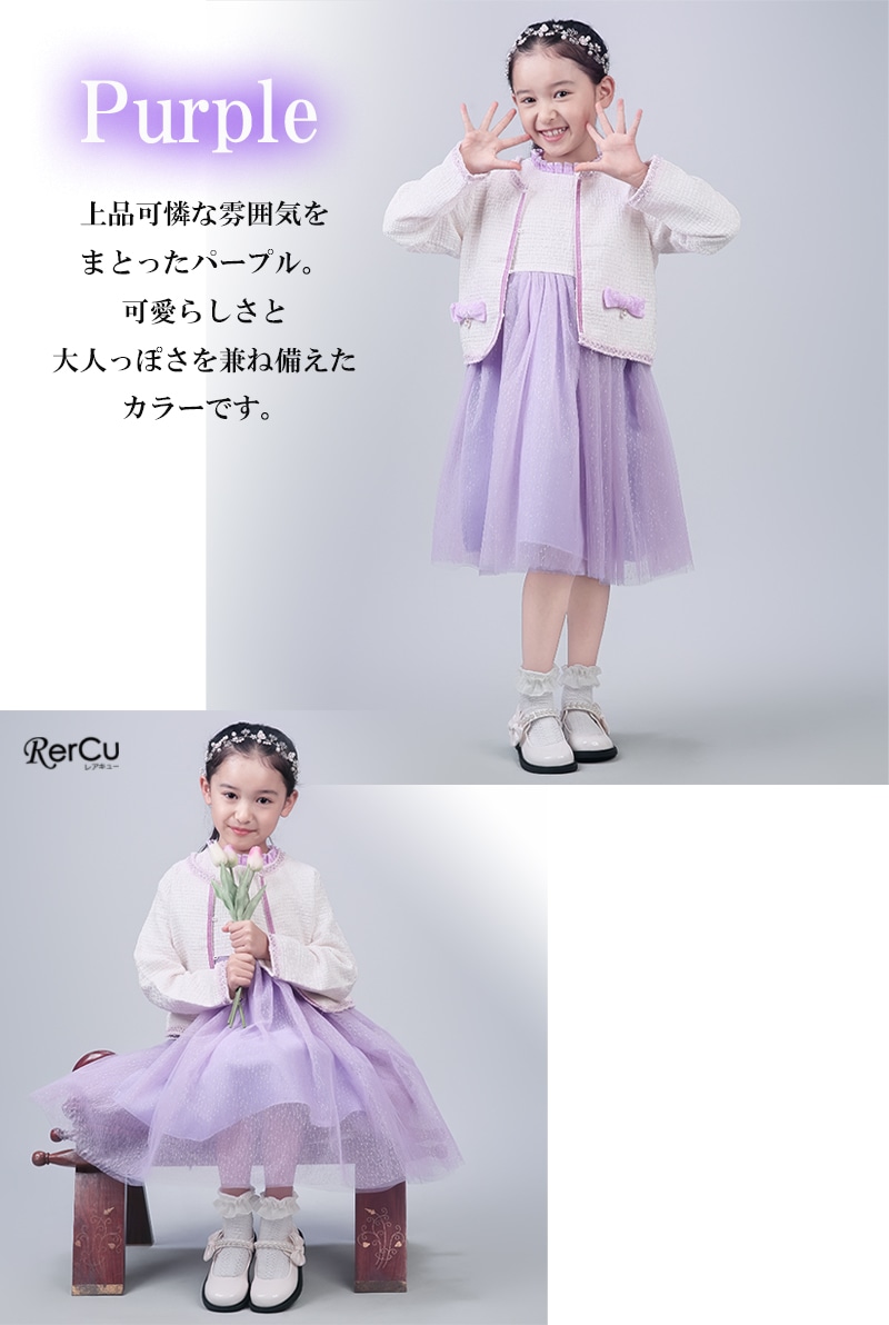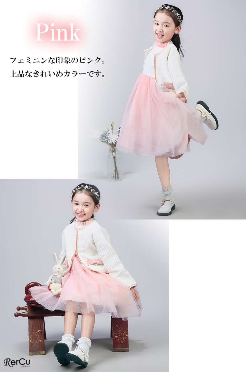 ボレロを合わせれば、卒園式・入学式にふさわしい上品コーデに。ワンピース単体は、結婚式・発表会・パーティーなど華やかな場面にも活躍します。シンプルでありながらドレスのような存在感があり、幅広いフォーマルシーンで頼れるセットアップです。