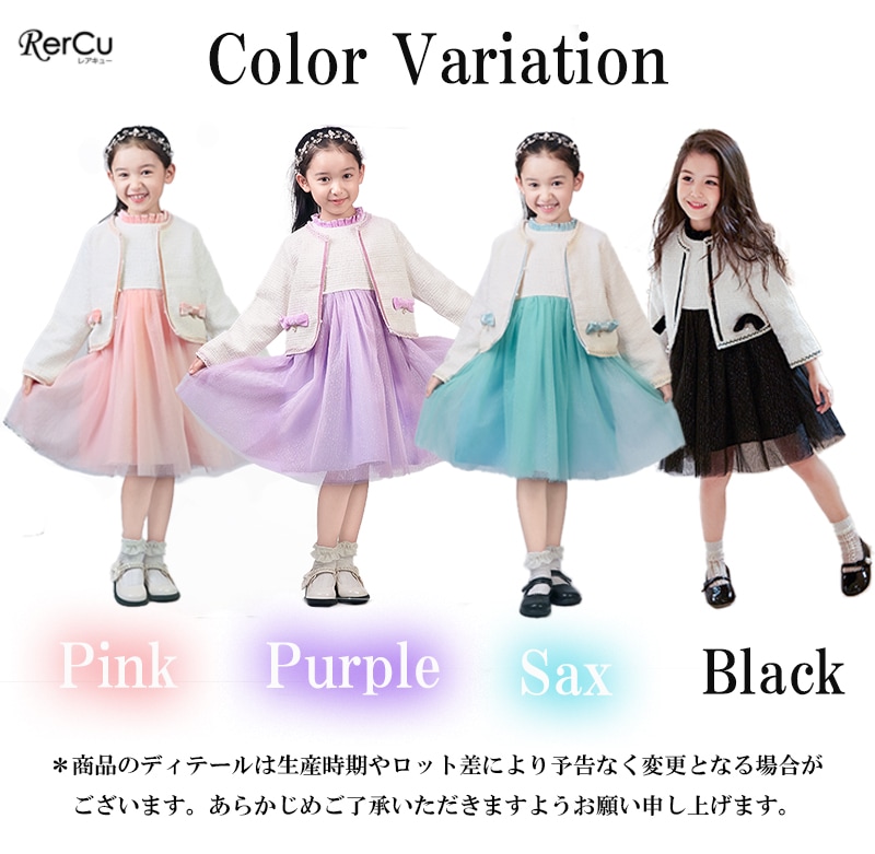 ボレロ ★110 身丈:31cm バスト:66cm 袖丈:36cm ★120 身丈:35cm バスト:74cm 袖丈:39cm ★130 身丈:38cm バスト:78cm 袖丈:41cm ★140 身丈:41cm バスト:80cm 袖丈:44cm ★150 身丈:43cm バスト:86cm 袖丈:46cm ★160 身丈:45cm バスト:90cm 袖丈:48cm ワンピース ★110 着丈:64cm バスト:58cm ★120 着丈:66cm バスト:62cm ★130 着丈:69cm バスト:64cm ★140 着丈:75cm バスト:72cm ★150 着丈:80cm バスト:76cm ★160 着丈:85cm バスト:85cm