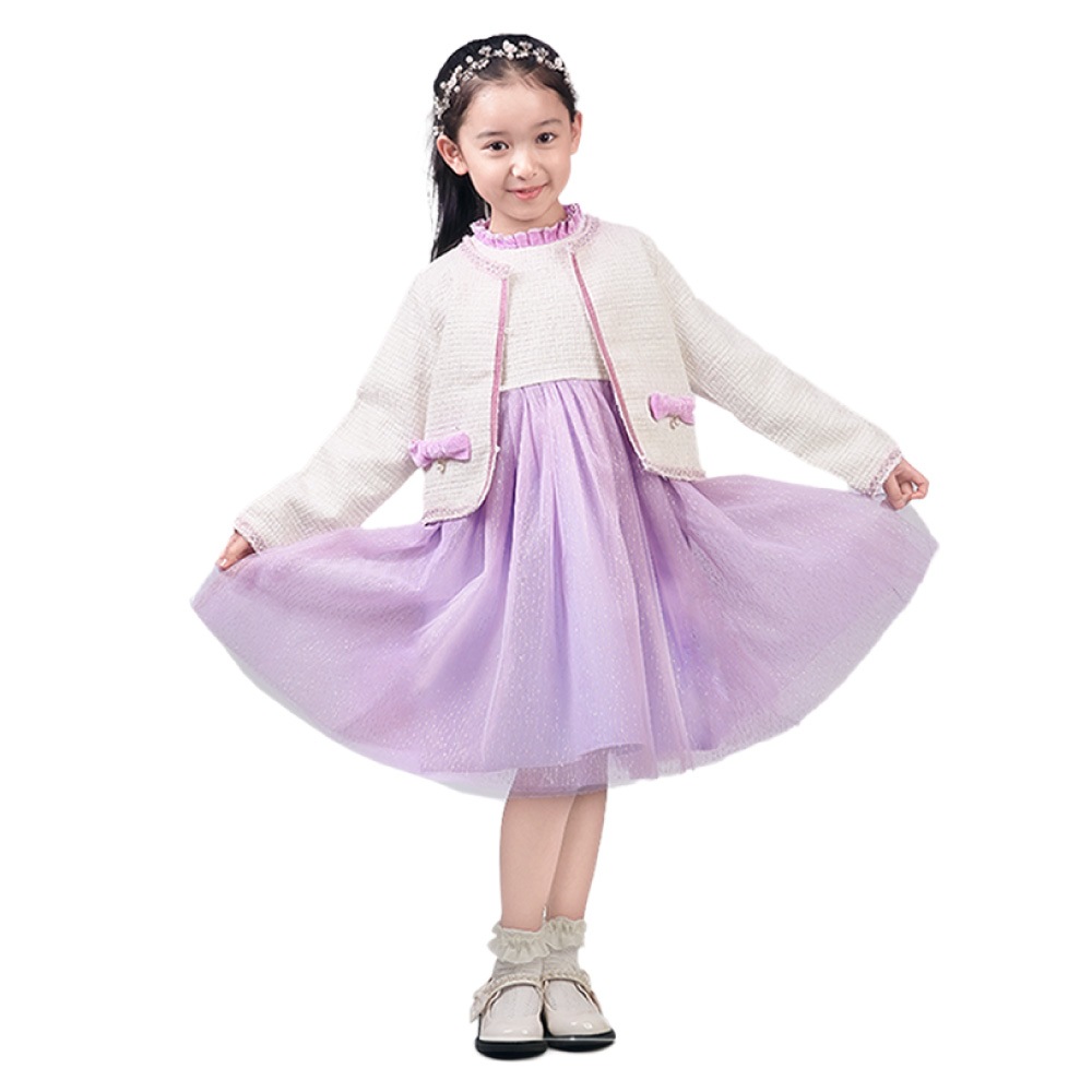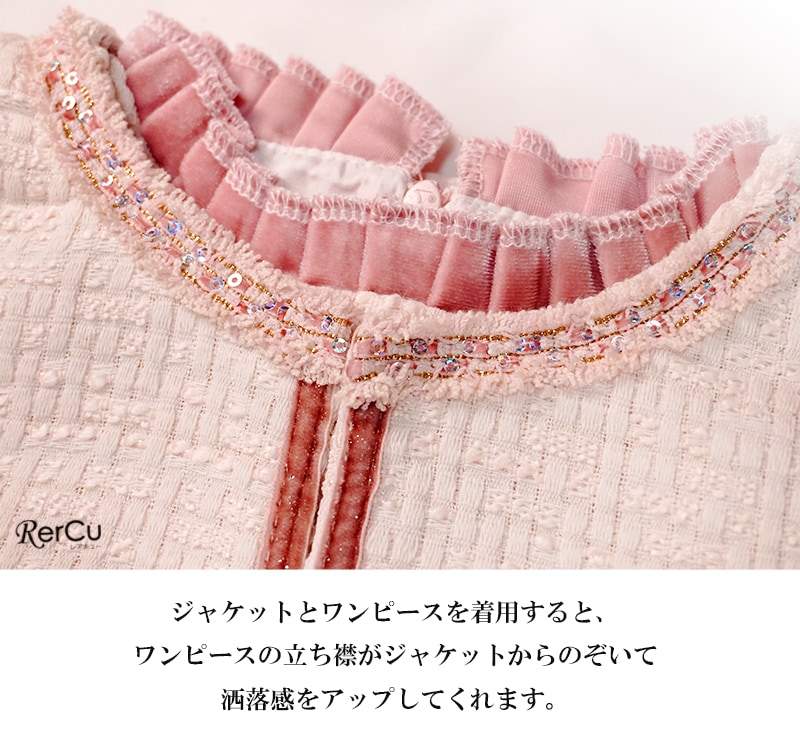 上品で華やかな、ツイード風ジャケット×ワンピースのセットアップ。