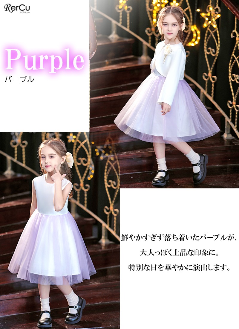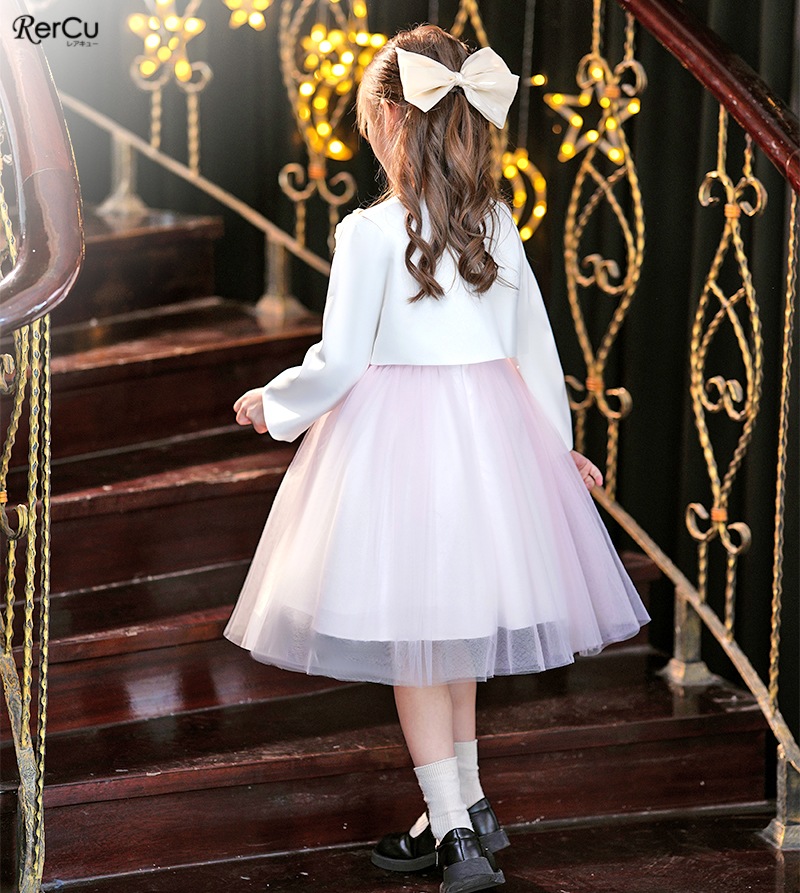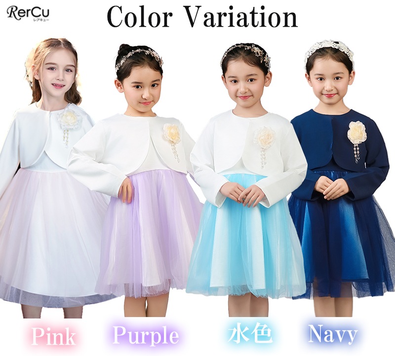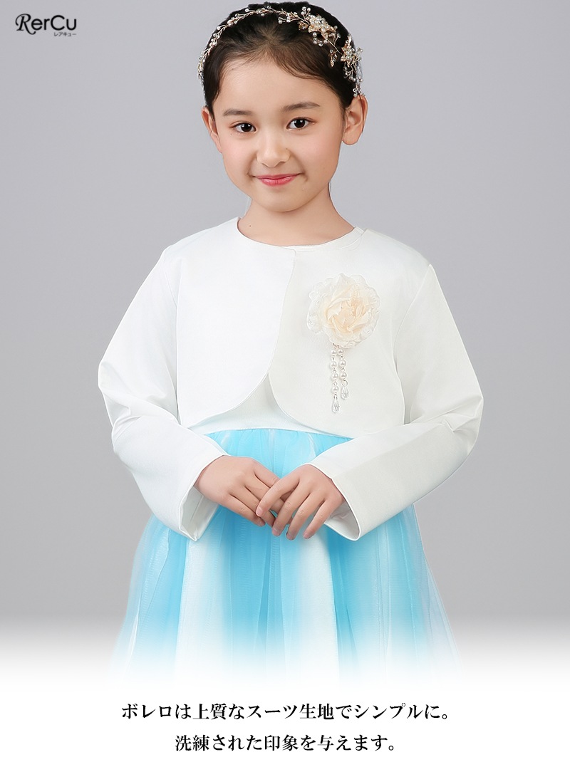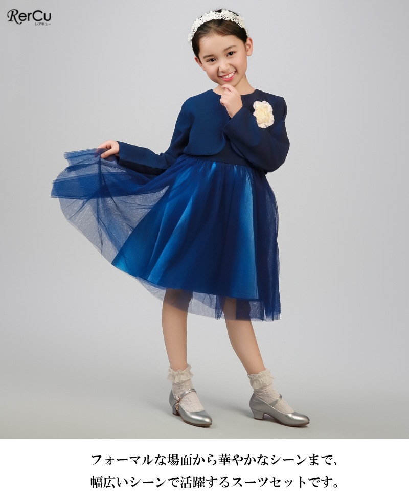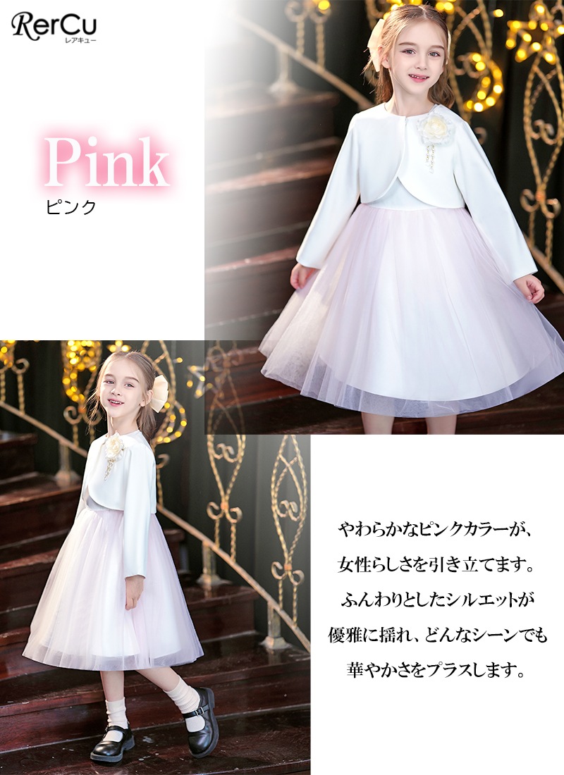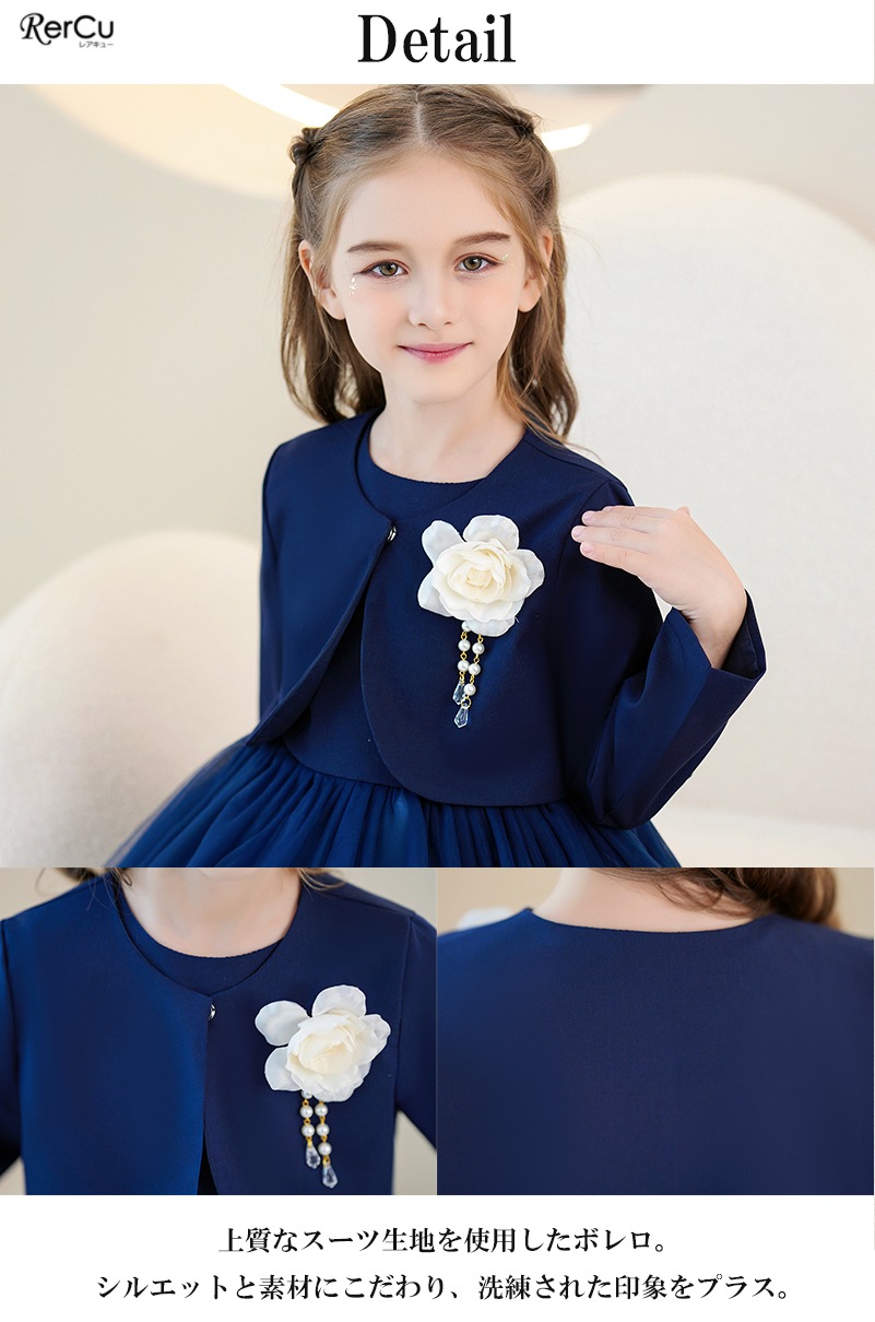 ボレロを合わせれば、卒園式・入学式にふさわしい上品コーデに。ワンピース単体は、結婚式・発表会・パーティーなど華やかな場面にも活躍します。シンプルでありながらドレスのような存在感があり、幅広いフォーマルシーンで頼れるセットアップです。
