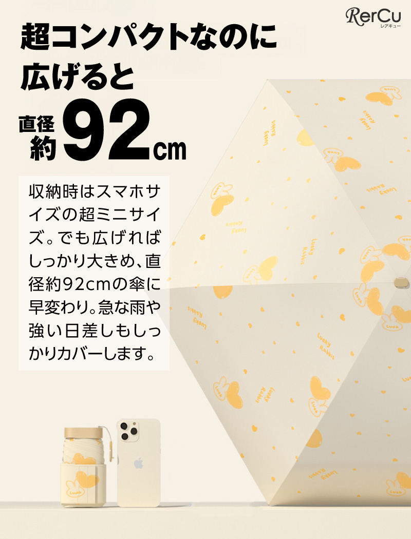 高さ13cm×幅6cm×厚さ3.5cmのミニサイズながら、UVカット率99.9%の高機能で、強い日差しから肌をしっかり守ります。