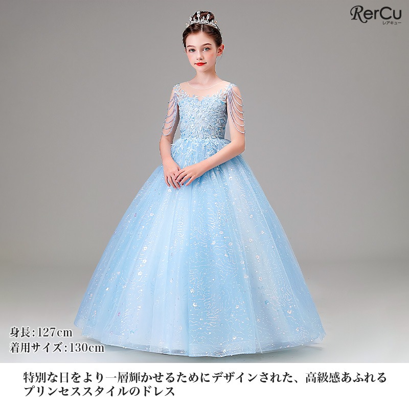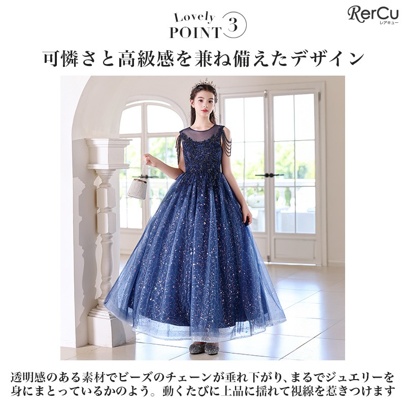 ピアノ・バイオリンなどの発表会や結婚式参列、七五三、誕生日撮影など、特別な日にぴったりの1着。コーデ不要で主役級の存在感を放つドレスです。