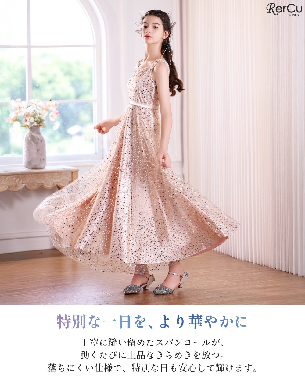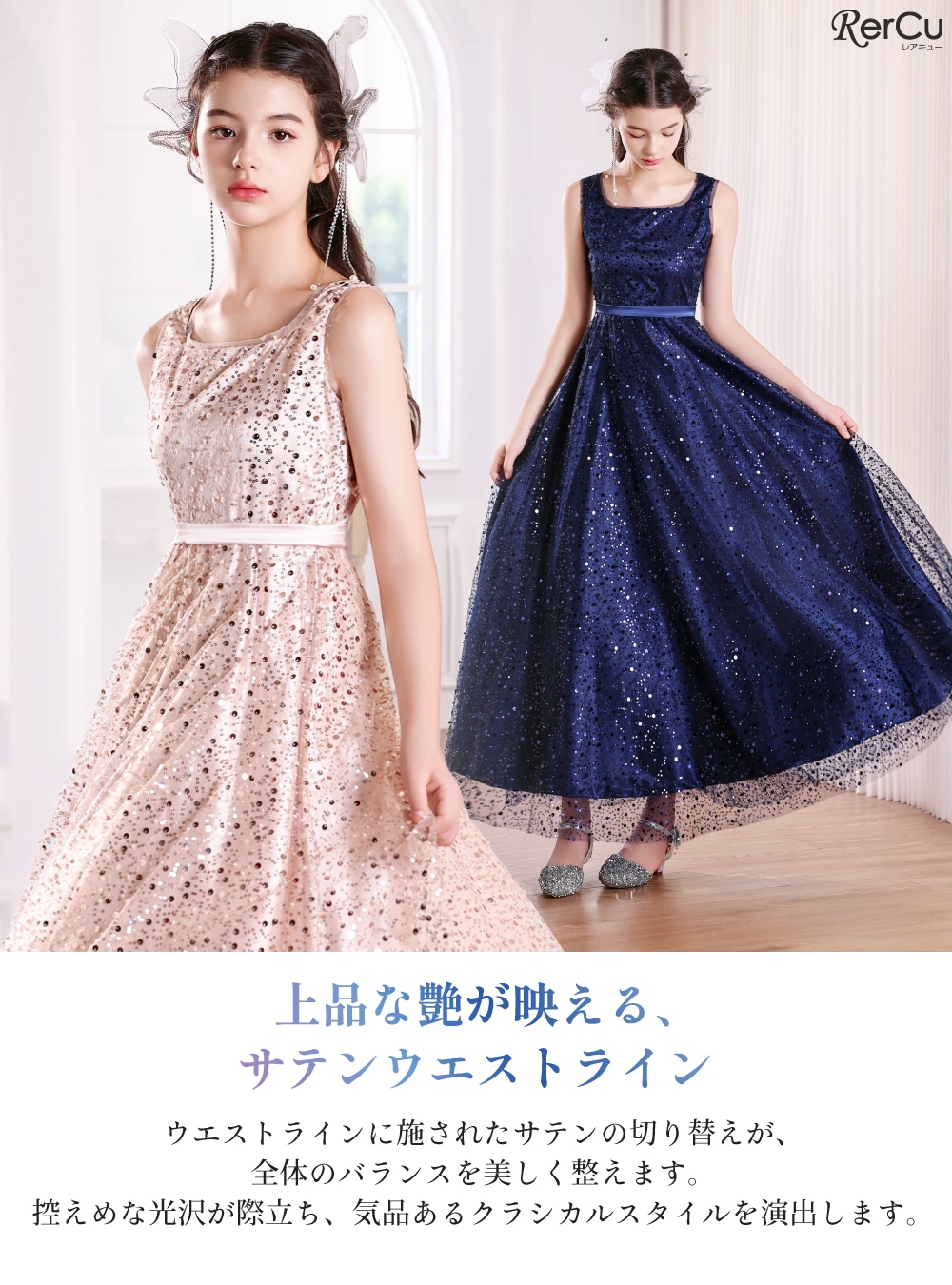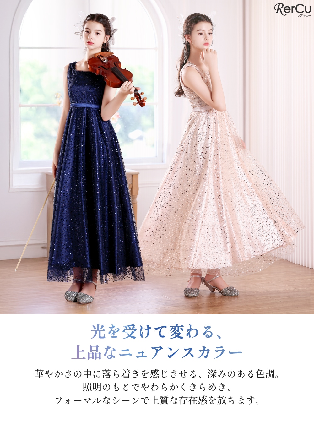 発表会や結婚式、七五三、誕生日パーティーなど、晴れの日にぴったりのドレス。光の加減で表情を変えるニュアンスカラーが、お子さまの特別な瞬間をよりいっそう輝かせます。お好みに合わせて選べるカラーバリエーションをご用意しました。