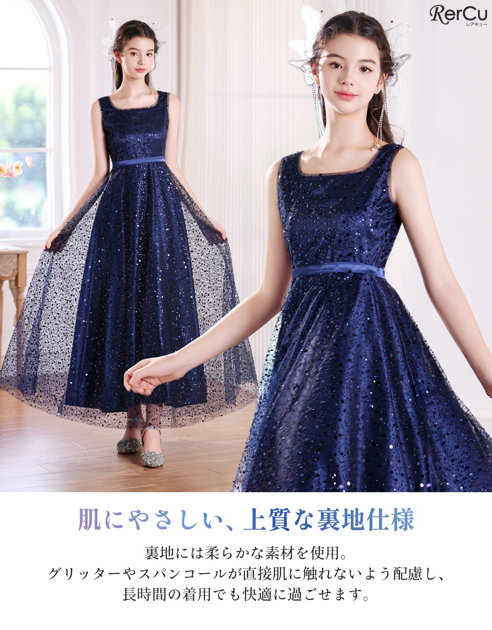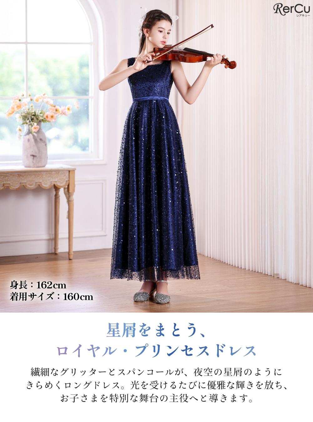 | サイズ感 | 普通 model:162cm /160mのドレスを着用。 普通体型のお子様には、普段と同じサイズをお勧めいたします(サイズ表をご参考ください)。 |