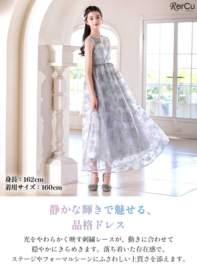 | サイズ感 | 普通 model:162cm /160mのドレスを着用。 普通体型のお子様には、普段と同じサイズをお勧めいたします(サイズ表をご参考ください)。 |
