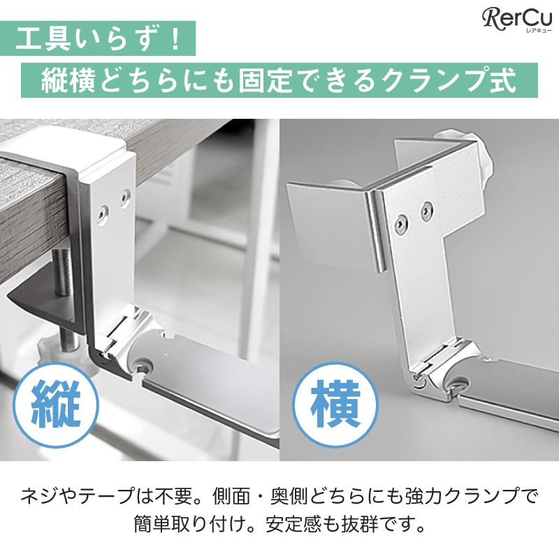 オフィス、自宅、ゲーミングデスク、書斎など幅広く活躍。整理整頓しながら空間を広く使えるので、快適な作業環境づくりに最適です。最大50mm厚の天板に対応し、工具不要で簡単に取り付け・取り外しが可能。