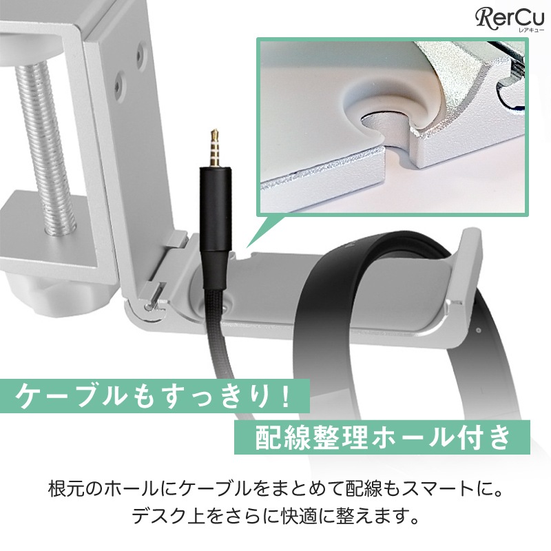 使わない時は「カチッ」と上向きに折りたためる省スペース設計。デスク下にすっきり収まり、必要な時だけサッと展開できます。ケーブルホール付きで、ヘッドホンや充電コードの配線もスマートに整理可能。