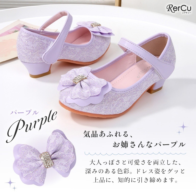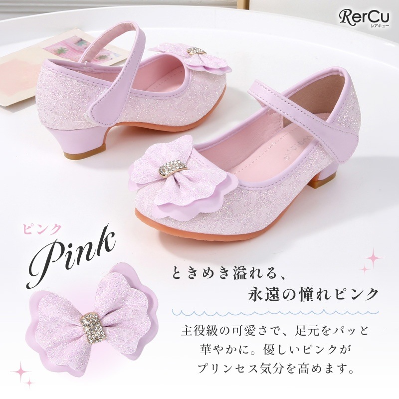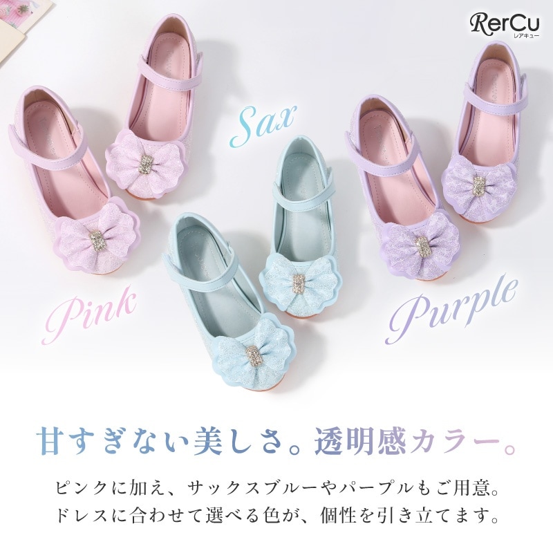 ピアノやバイオリンの発表会、コンクール、結婚式、卒業式や入学式、特別な日の記念撮影に。ドレスに合わせて選べる透明感あふれる3色展開で、お子様の個性を引き立て、一生の宝物になるような思い出を足元から彩ります。