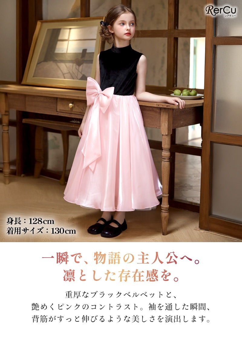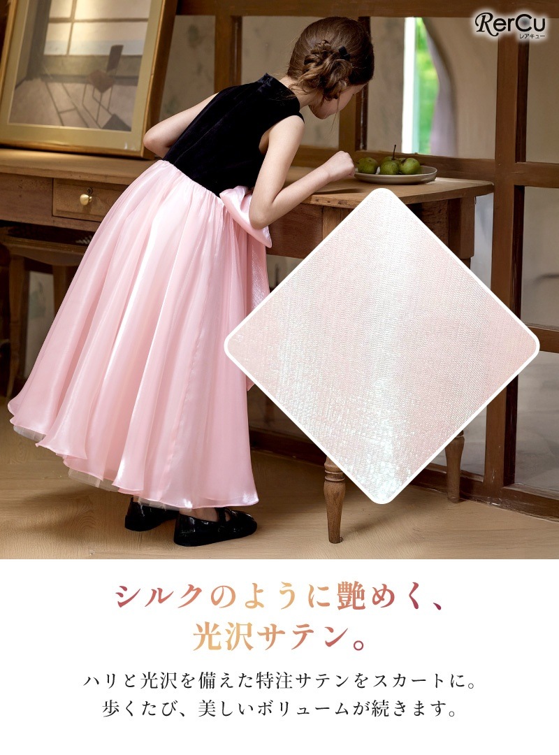 ピアノやバイオリンの発表会、コンクール、結婚式、特別な日の記念撮影など。凛とした存在感を放つこのドレスが、お子様の「一番輝く瞬間」に寄り添い、一生の宝物になるような思い出を彩ります。